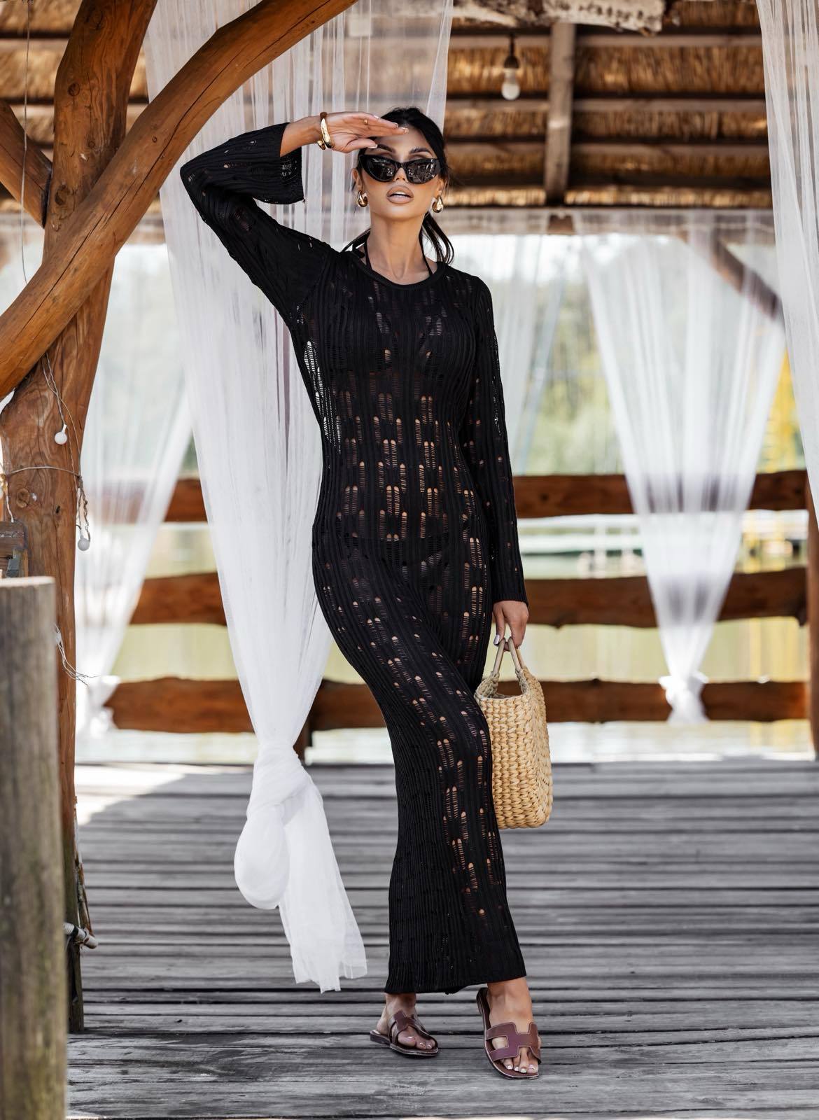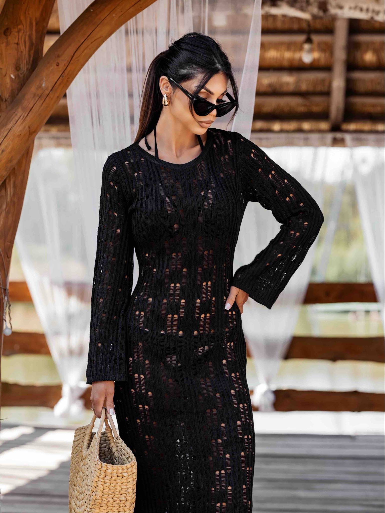 Αυτο το φόρεμα παραλίας είναι το ιδανικό φόρεμα για να ρίχνεις πάνω από το μαγιό σου και να είσαι αμέσως κομψή. Με ελαφρύ πλεκτό ύφασμα και αέρινη γραμμή, τονίζει τη σιλουέτα χωρίς να κολλάει. Το σχέδιο διαθέτει ανοιχτή πλάτη και εβαζέ στρώσιμο με έξτρα φινέτσα και 70s αίσθηση. Ιδανικό για διακοπές, poolside βόλτες και resort εμφανίσεις.