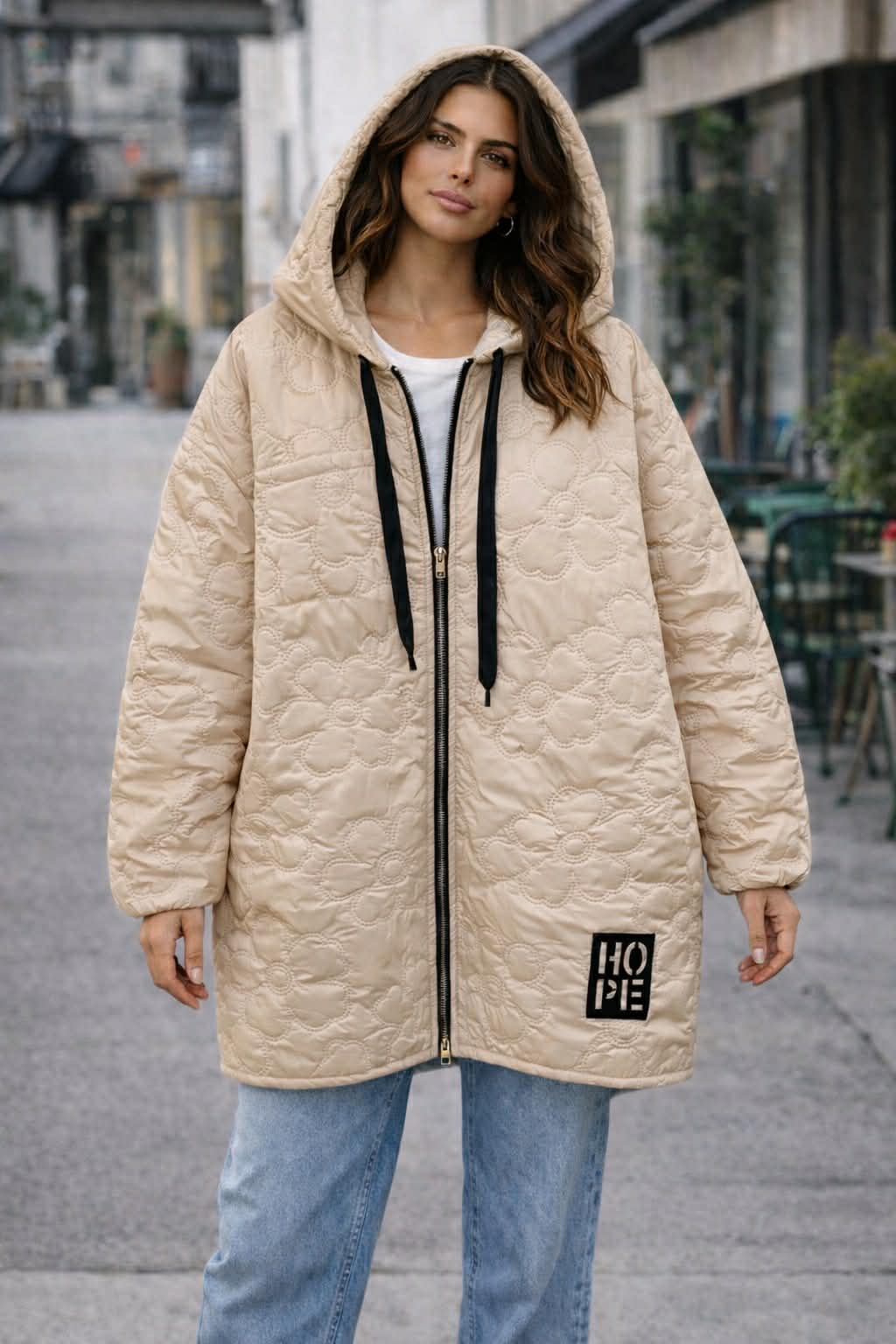 Oversized ανοιξιάτικο μπουφάν καπιτονέ με πολύ ελαφρυά επένδυση. Διαθέτει κουκούλα και τσέπες στα πλαϊνά.