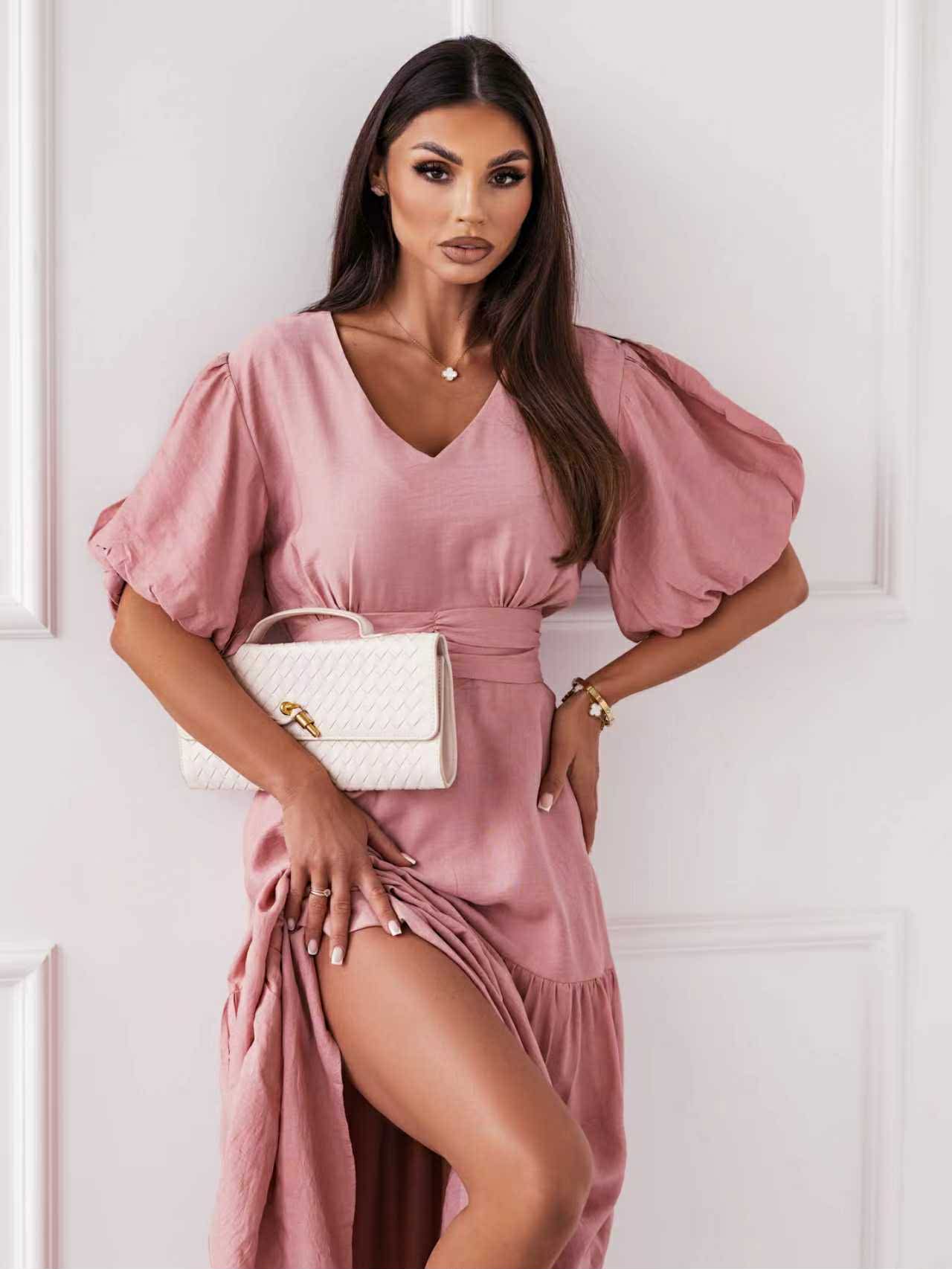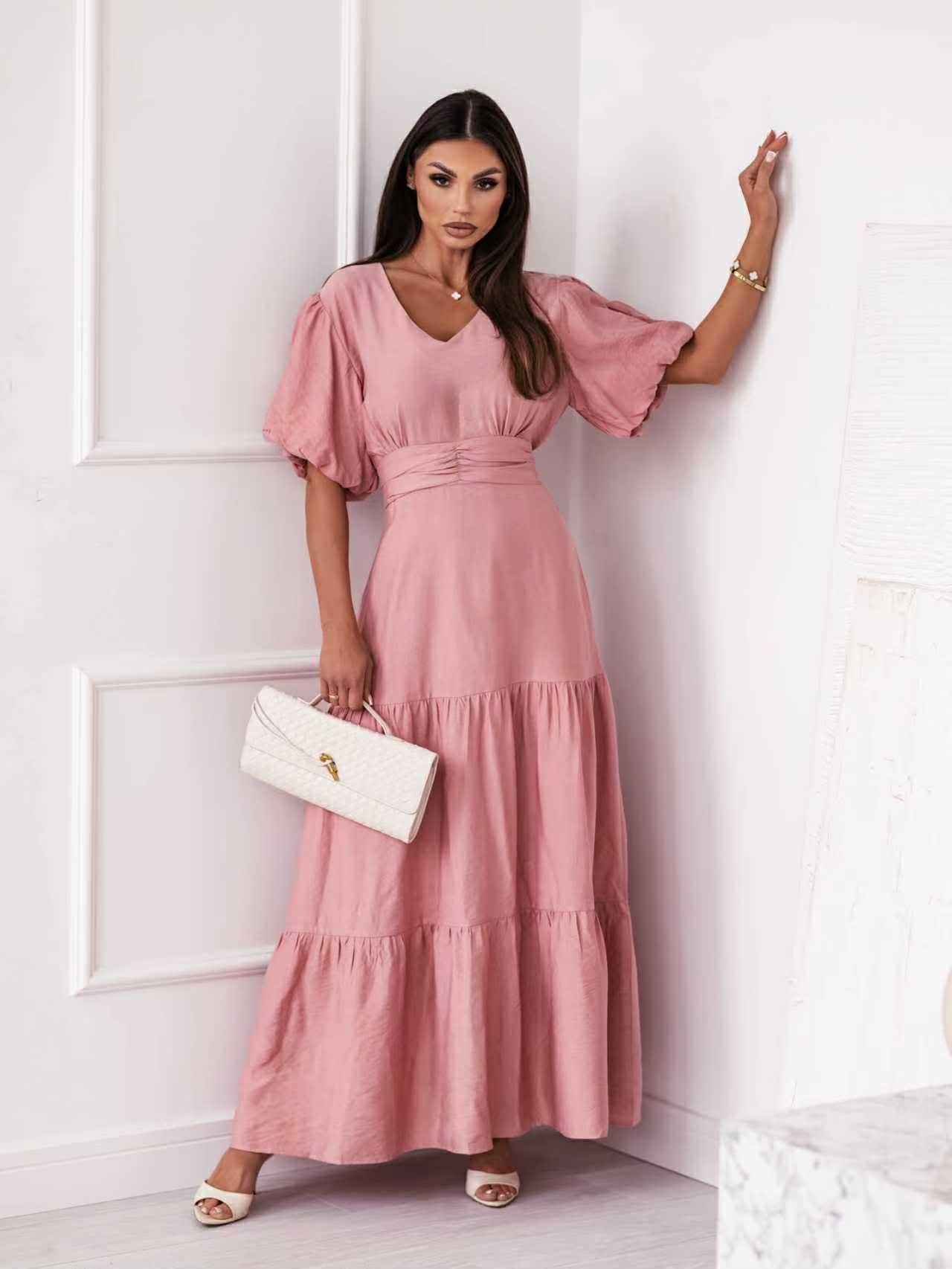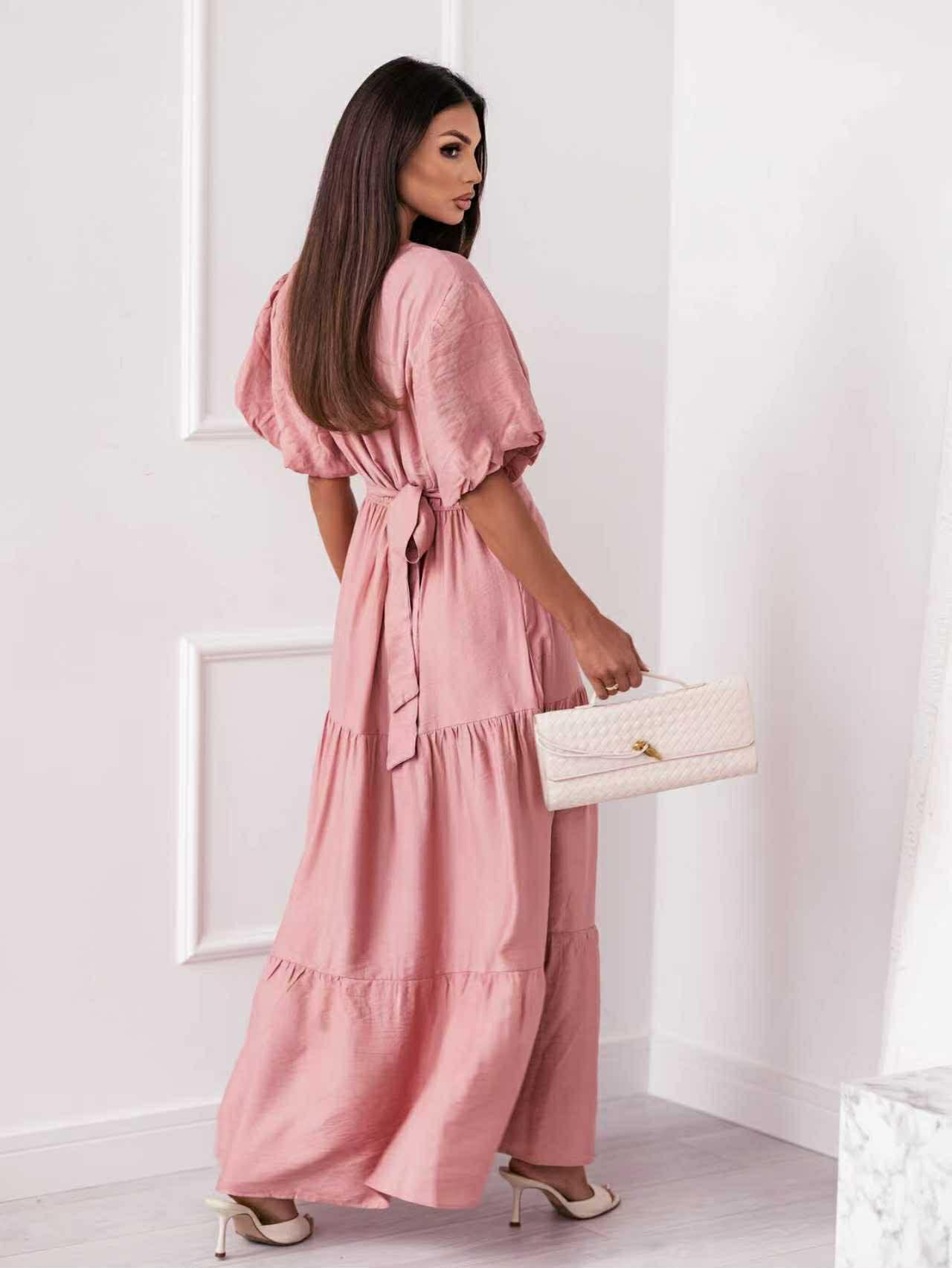 Ρομαντικό και αέρινο maxi φόρεμα που συνδυάζει άνεση και κομψότητα. Τα φουσκωτά μανίκια προσθέτουν χαρακτήρα ενώ η ζώνη στη μέση τονίζει τη σιλουέτα. Η ανάλαφρη γραμμή με διακριτικά βολάν στο τελείωμα δημιουργεί κίνηση σε κάθε βήμα. Ιδανικό για all-day εμφανίσεις με διαχρονική αισθητική.