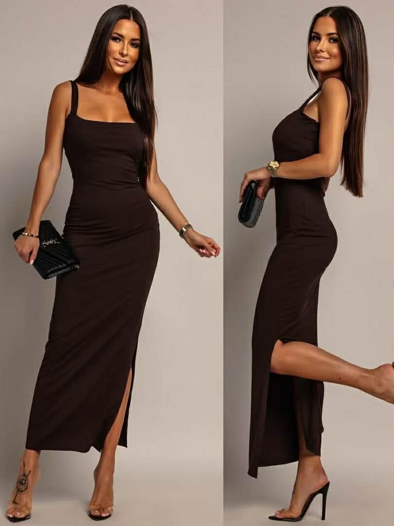 Εντυπωσιακό maxi φόρεμα που αγκαλιάζει τη σιλουέτα και αναδεικνύει τις καμπύλες με απόλυτη κομψότητα. Διαθέτει εφαρμοστή γραμμή με λεπτές τιράντες και ενσωματωμένα cups στο μπούστο για σταθερότητα και άψογη στήριξη, χαρίζοντας άνεση και αυτοπεποίθηση σε κάθε κίνηση. Η ανοιχτή πλάτη με διακριτικές λωρίδες προσθέτει μια σαγηνευτική πινελιά, ενώ το μήκος του δημιουργεί ένα elegant και θηλυκό αποτέλεσμα, ιδανικό για βραδινές εμφανίσεις και ξεχωριστές περιστάσεις.