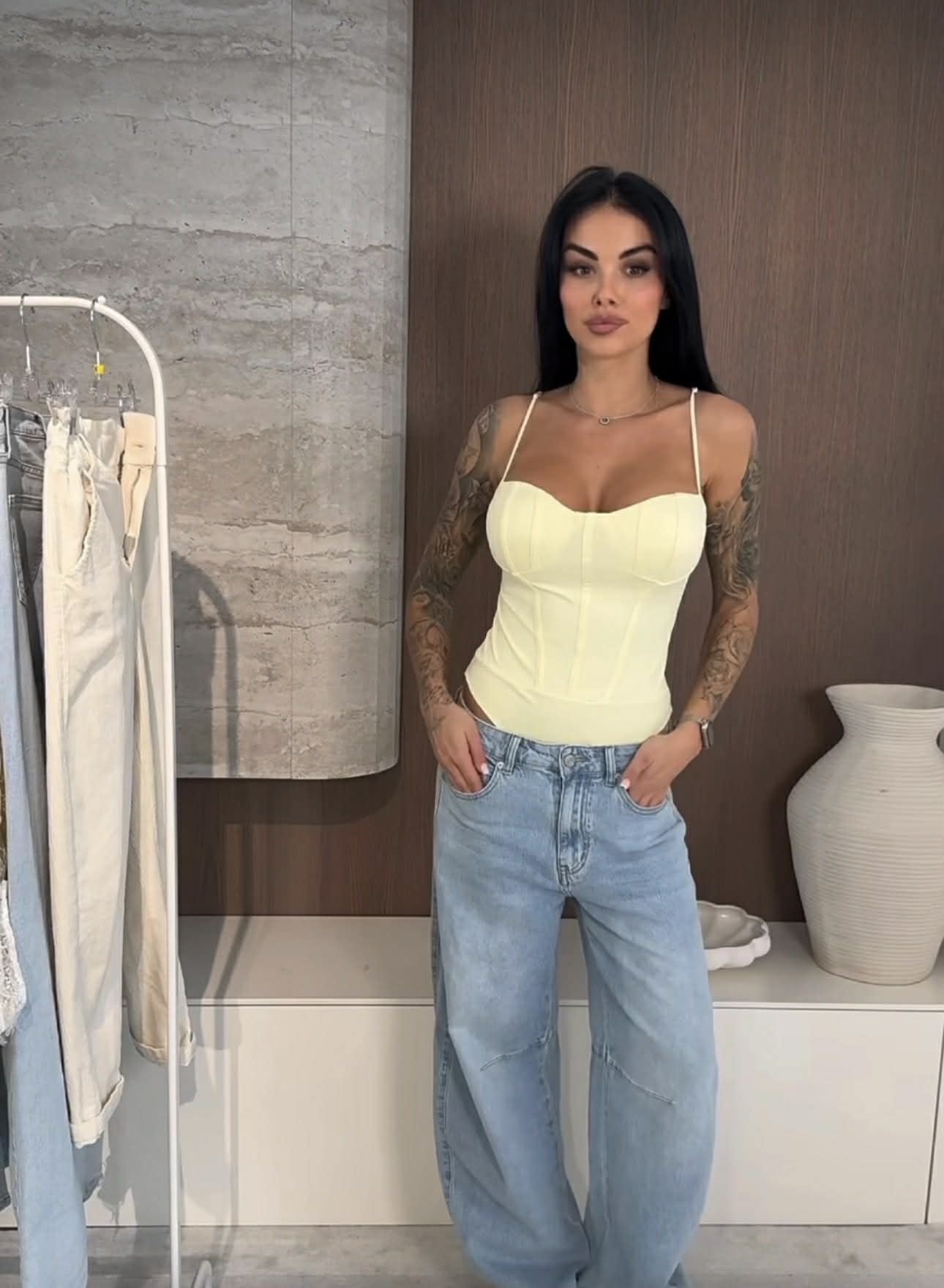 Kορμάκι τύπου κορσέ με cups στο μπούστο. Συνδύασε το με ψηλόμεσο παντελόνι και σακάκι για το πιο θηλυκό outfit.