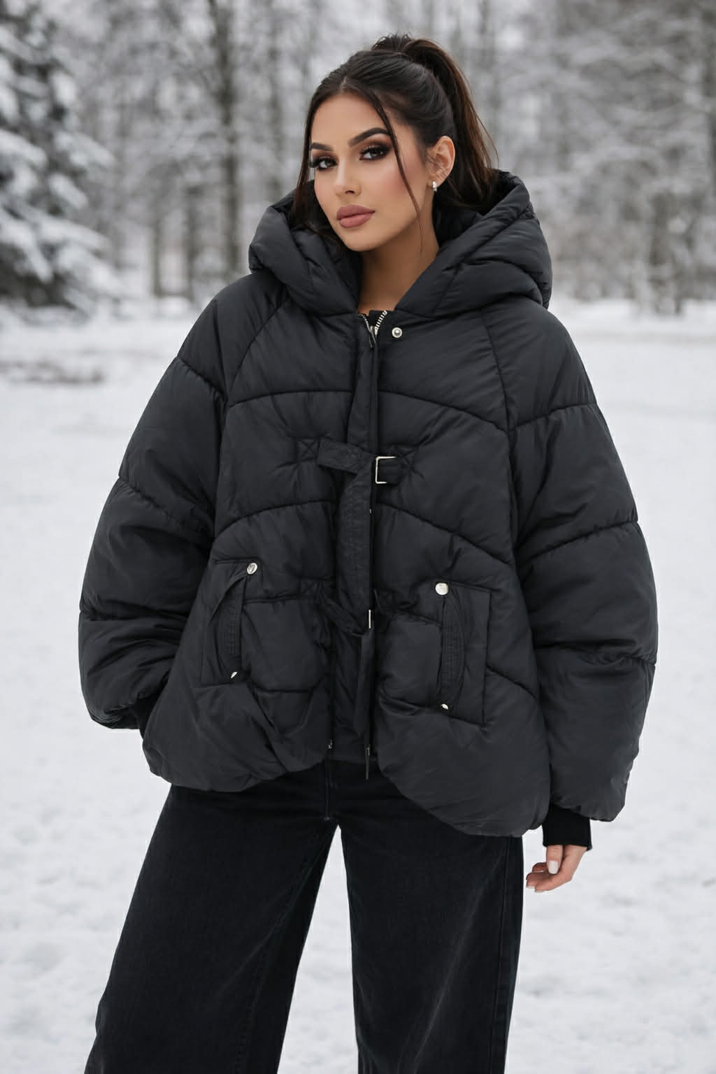 Puffer μπουφάν σε μαύρο χρώμα ιδανικό για τις κρύες μέρες του χειμώνα. Διαθέτει κανονική γραμμή με φουσκωτή υφή κουκούλα για επιπλέον προστασία από το κρύο και ρυθμιζόμενο κλείσιμο στο μπροστινό μέρος για μοντέρνο και ξεχωριστό στυλ. Ένα statement πανωφόρι που συνδυάζεται εύκολα τόσο με casual όσο και με πιο stylish εμφανίσεις.