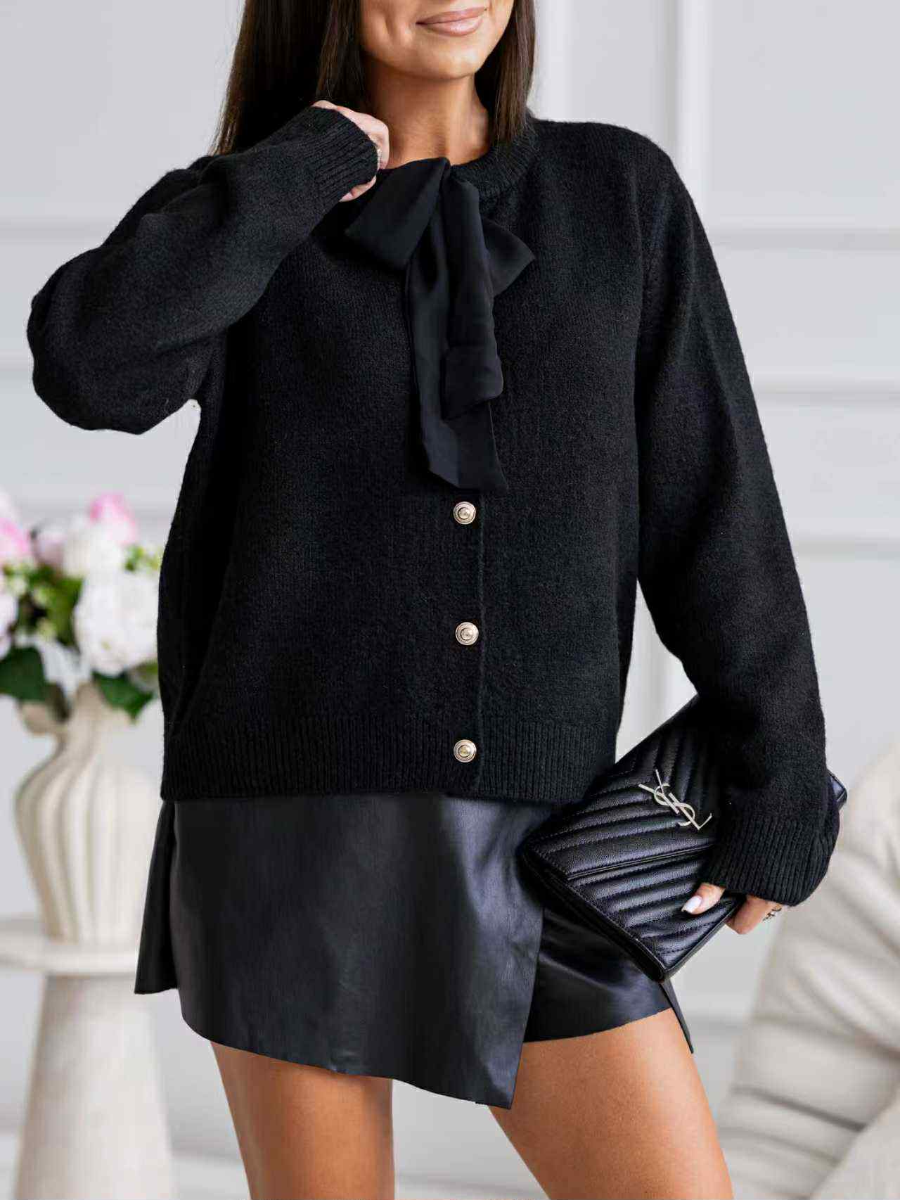 Αναβάθμισε το καθημερινό σου στυλ με αυτή τη ζακέτα που συνδυάζει κομψότητα και άνεση! Το απαλό της πλέξιμο χαρίζει μοναδική αίσθηση ζεστασιάς, ενώ ο φιόγκος στο λαιμό προσθέτει μια ρομαντική και θηλυκή πινελιά. Τα διακριτικά κουμπιά στο μπροστινό μέρος ολοκληρώνουν ένα look που μπορείς να φορέσεις από το πρωί μέχρι το βράδυ. Ιδανική για να τη συνδυάσεις με μίνι φούστα, τζιν ή tailored παντελόνι για chic και ανεπιτήδευτα στυλάτες εμφανίσεις. Το απαλό της πλέξιμο εξασφαλίζει άνεση και στυλ όλη μέρα — από το πρωινό καφέ μέχρι τη βραδινή έξοδο.