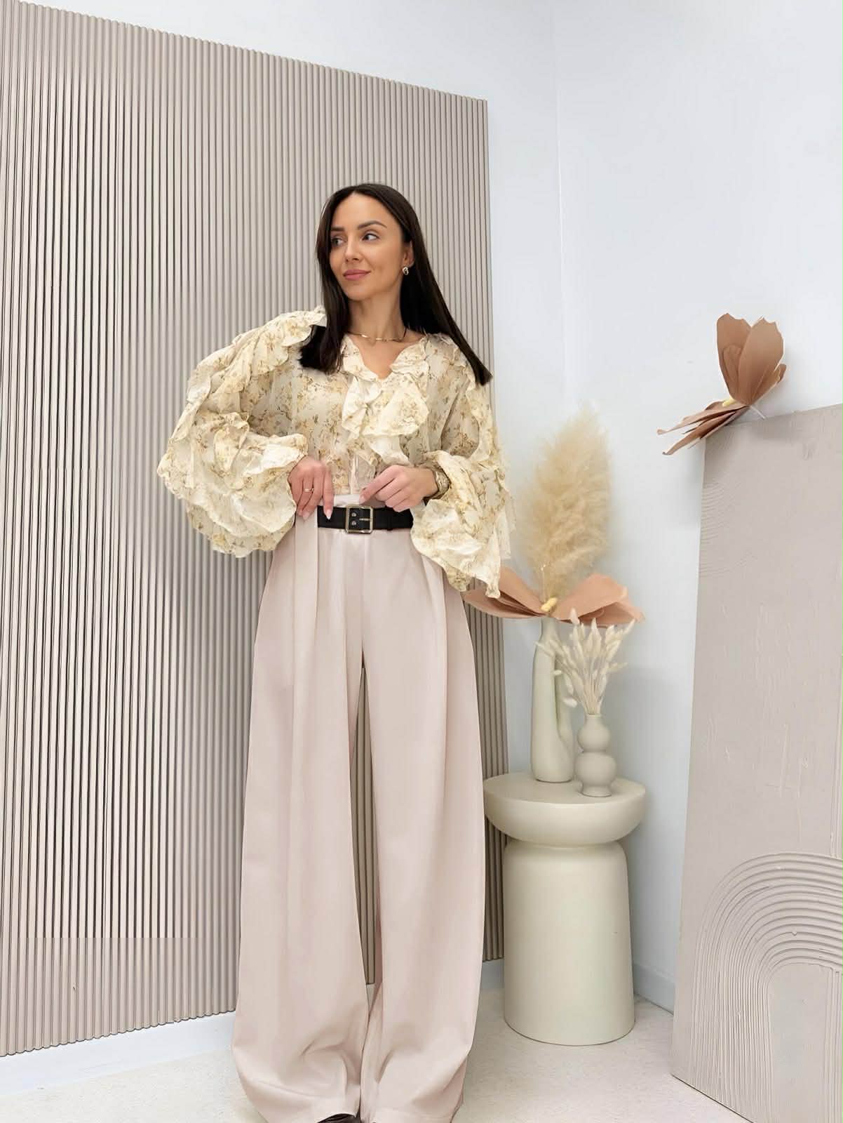 Κομψό παντελόνι με ψηλόμεση γραμμή που κολακεύει τη σιλουέτα. Ίσια χαλαρή εφαρμογή και διαχρονικό στυλ. Έχει ιδιαίτερο σχέδιο στην μέση που προσφέρει elegant εμφάνιση.Δώρο ζώνη
