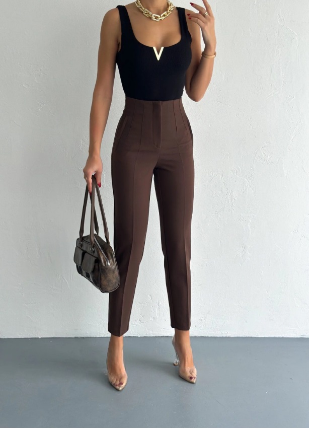 Ψηλόμεσο παντελόνι ελαφρώς ελαστικό (το ύφασμα του είναι πιο σταθερό) έχει φερμουάρ στο μπροστά μέρος.