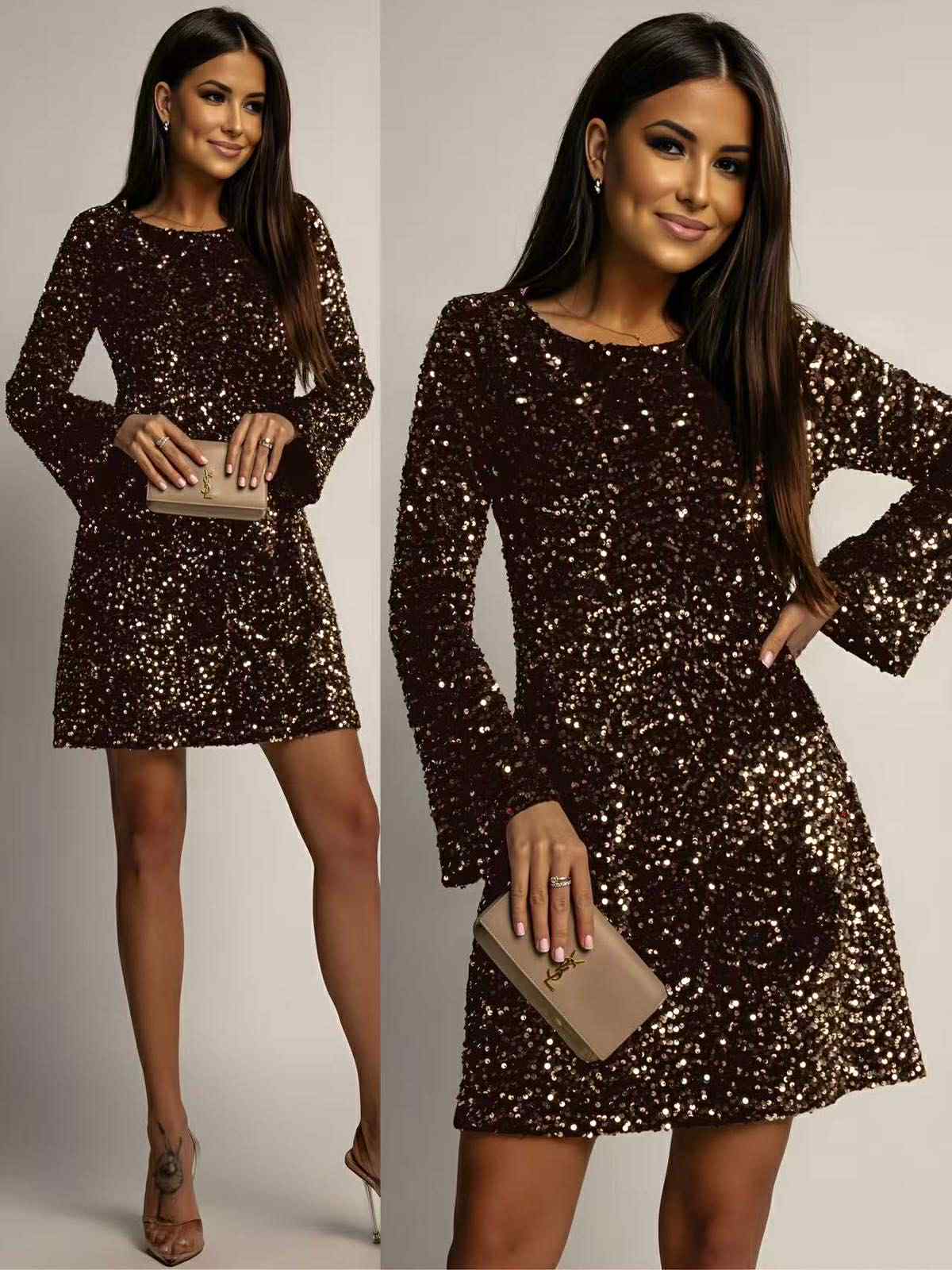 Αναδείξτε τη λάμψη σας με αυτό το εκθαμβωτικό μίνι φόρεμα! Καλυμμένο ολόκληρο με αστραφτερά παγετάκια, προσφέρει την απόλυτη glam διάθεση για κάθε βραδινή εμφάνιση. Η θηλυκή γραμμή του αγκαλιάζει διακριτικά το σώμα, ενώ τα μακριά μανίκια προσθέτουν κομψότητα και ισορροπία στο σύνολο. Η πλάτη με το εντυπωσιακό δέσιμο φιόγκο χαρίζει μια ρομαντική πινελιά, καθιστώντας το φόρεμα μοναδικό και ακαταμάχητο. Συνδύασέ το με ψηλοτάκουνα πέδιλα και ένα μικρό clutch για ένα outfit που θα τραβήξει όλα τα βλέμματα.