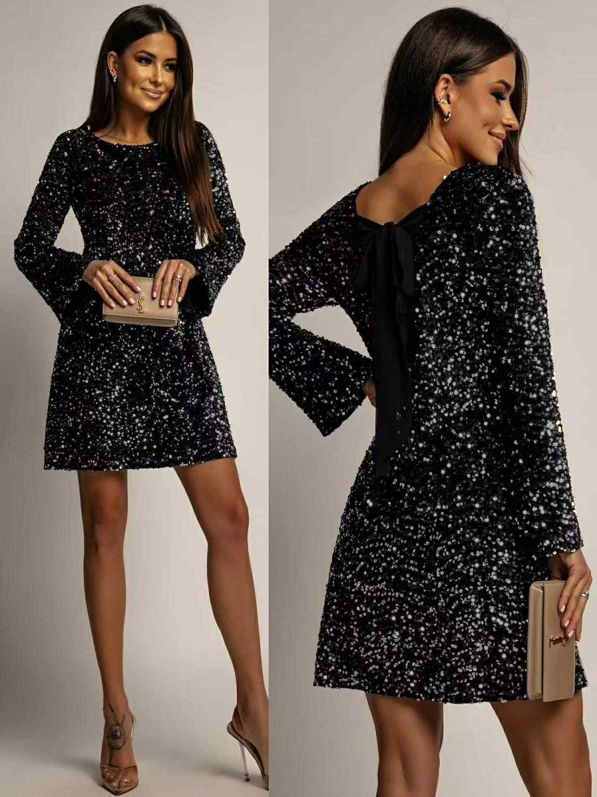 Αναδείξτε τη λάμψη σας με αυτό το εκθαμβωτικό μίνι φόρεμα! Καλυμμένο ολόκληρο με αστραφτερά παγετάκια, προσφέρει την απόλυτη glam διάθεση για κάθε βραδινή εμφάνιση. Η θηλυκή γραμμή του αγκαλιάζει διακριτικά το σώμα, ενώ τα μακριά μανίκια προσθέτουν κομψότητα και ισορροπία στο σύνολο. Η πλάτη με το εντυπωσιακό δέσιμο φιόγκο χαρίζει μια ρομαντική πινελιά, καθιστώντας το φόρεμα μοναδικό και ακαταμάχητο. Συνδύασέ το με ψηλοτάκουνα πέδιλα και ένα μικρό clutch για ένα outfit που θα τραβήξει όλα τα βλέμματα.