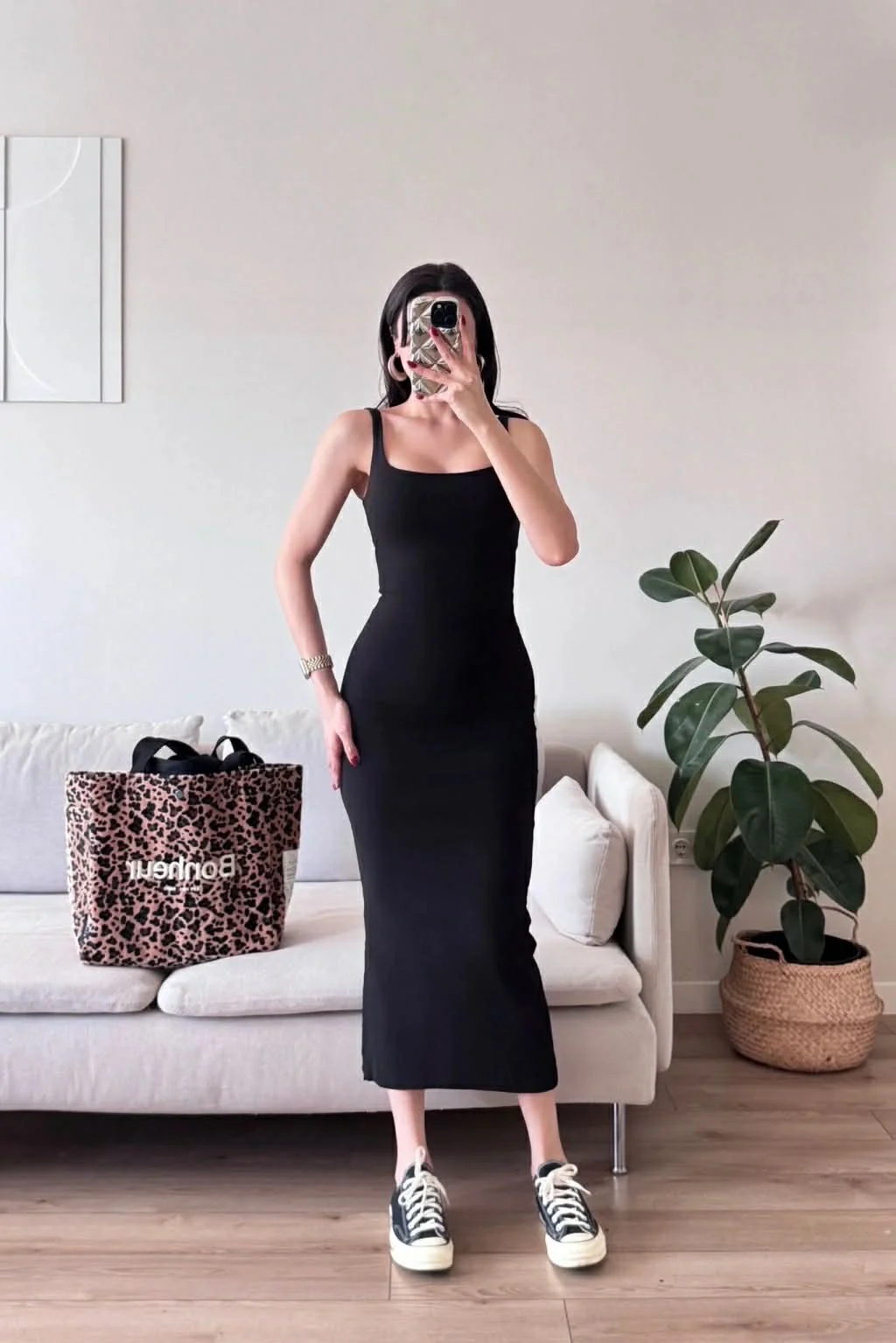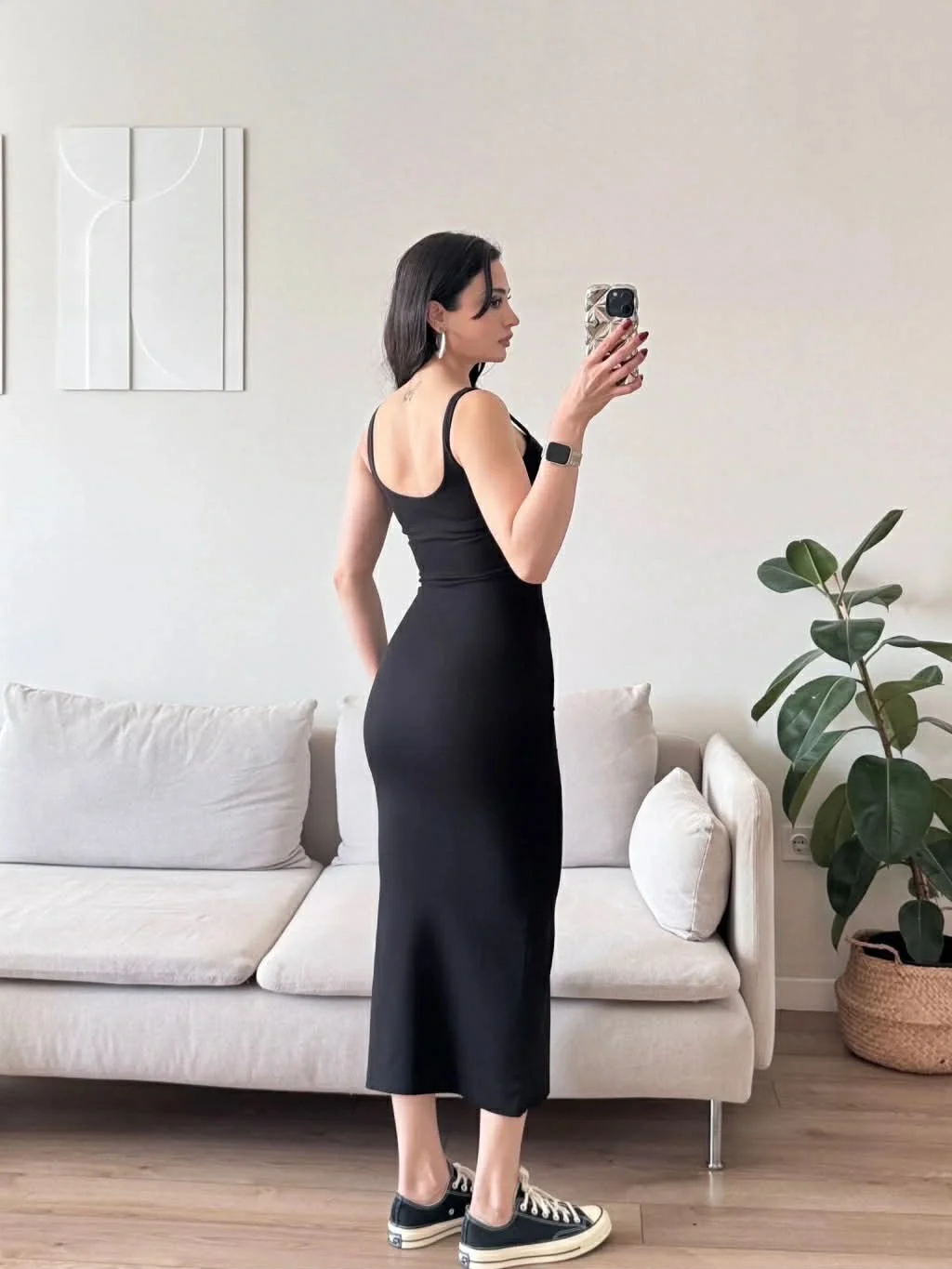Κομψό μίντι φόρεμα που αποπνέει φρεσκάδα και θηλυκότητα. Το εφαρμοστό του σχέδιο αγκαλιάζει υπέροχα τη σιλουέτα, ενώ οι λεπτές τιράντες και το minimal κόψιμο στο μπούστο δημιουργούν ένα διαχρονικά κομψό αποτέλεσμα. Το ελαστικό ύφασμα προσφέρει άνεση και τέλεια εφαρμογή, καθιστώντας το ιδανικό για καθημερινές εμφανίσεις αλλά και πιο κομψά looks. Συνδυάζεται εύκολα με sneakers για casual στυλ ή με πέδιλα και αξεσουάρ για πιο chic εμφανίσεις. Ένα must-have κομμάτι για την καλοκαιρινή σας γκαρνταρόμπα που φοριέται από το πρωί μέχρι το βράδυ.