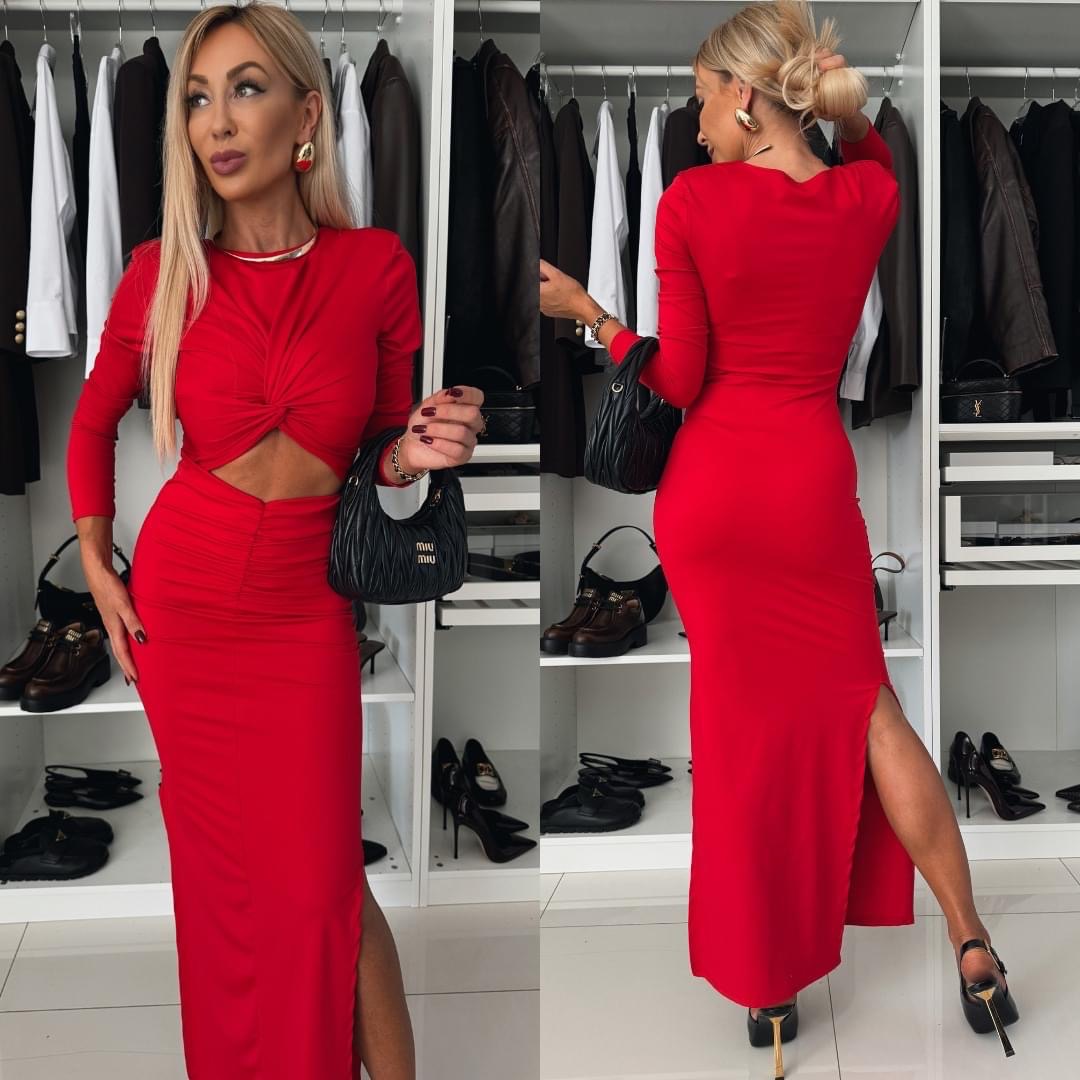 Maxi φόρεμα με σούρα και άνοιγμα μπροστά