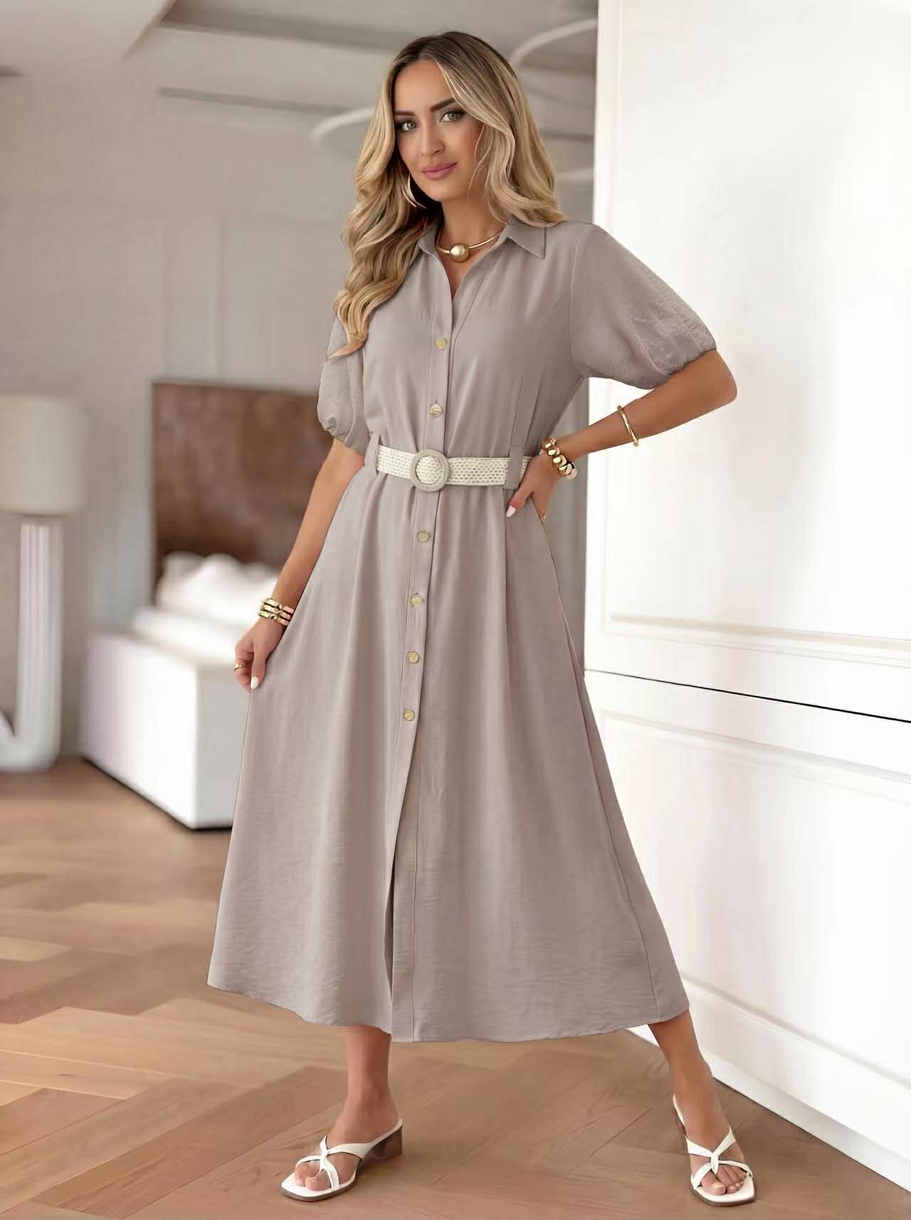 Ρομαντικό και ταυτόχρονα δυναμικό, αυτό το σεμιζιέ φόρεμα ξεχωρίζει για την άνετη γραμμή και τη ζώνη που τονίζει τη μέση.  Διαθέτει γιακά και κουμπιά σε όλο το μήκος και η αέρινη κίνηση του υφάσματος το καθιστά ιδανικό για καθημερινές εμφανίσεις.