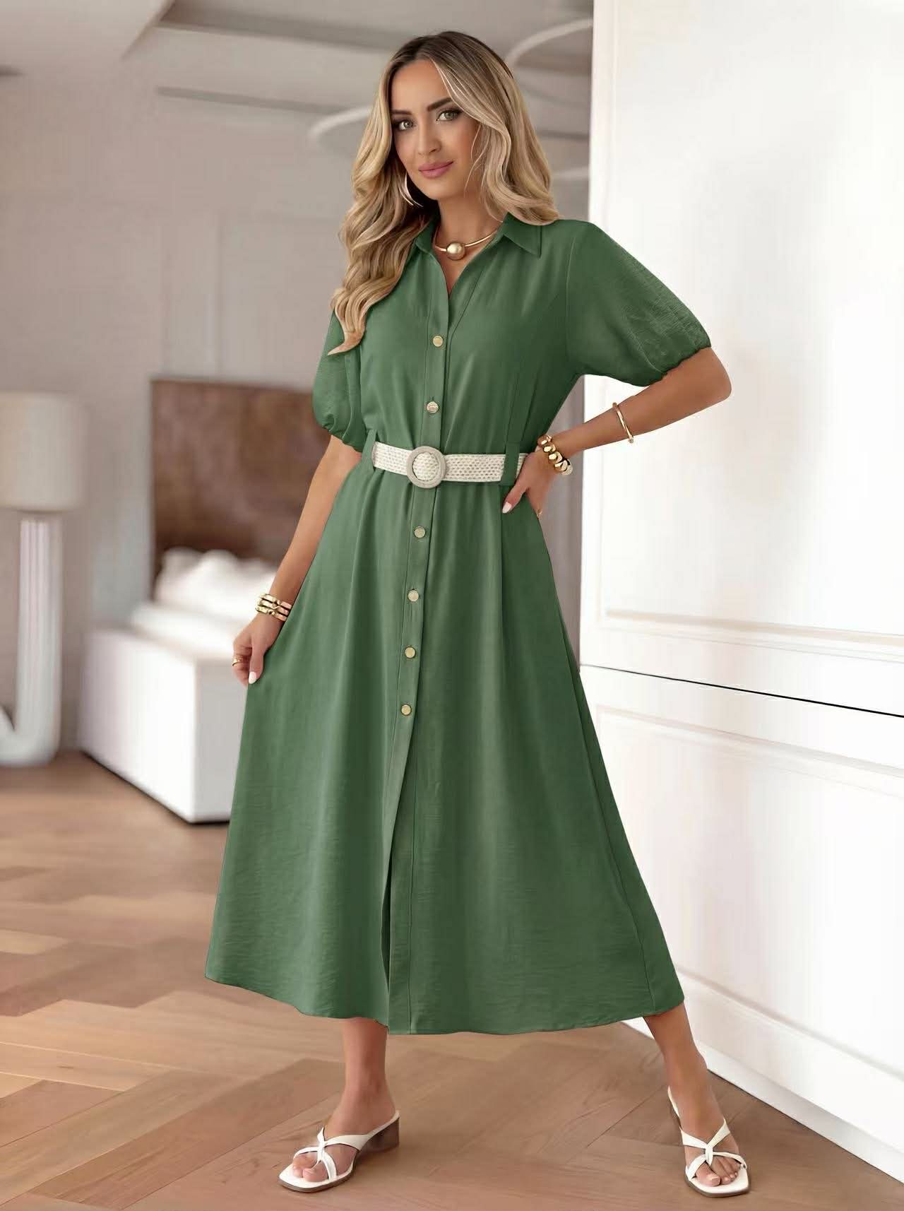 Ρομαντικό και ταυτόχρονα δυναμικό, αυτό το σεμιζιέ φόρεμα ξεχωρίζει για την άνετη γραμμή και τη ζώνη που τονίζει τη μέση.  Διαθέτει γιακά και κουμπιά σε όλο το μήκος και η αέρινη κίνηση του υφάσματος το καθιστά ιδανικό για καθημερινές εμφανίσεις.