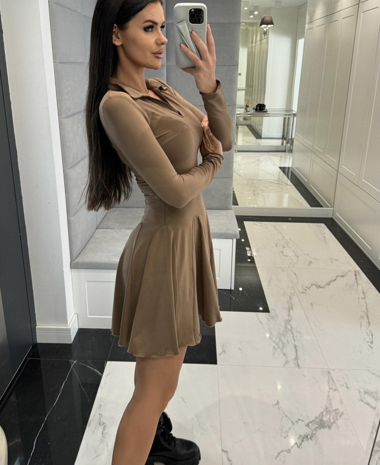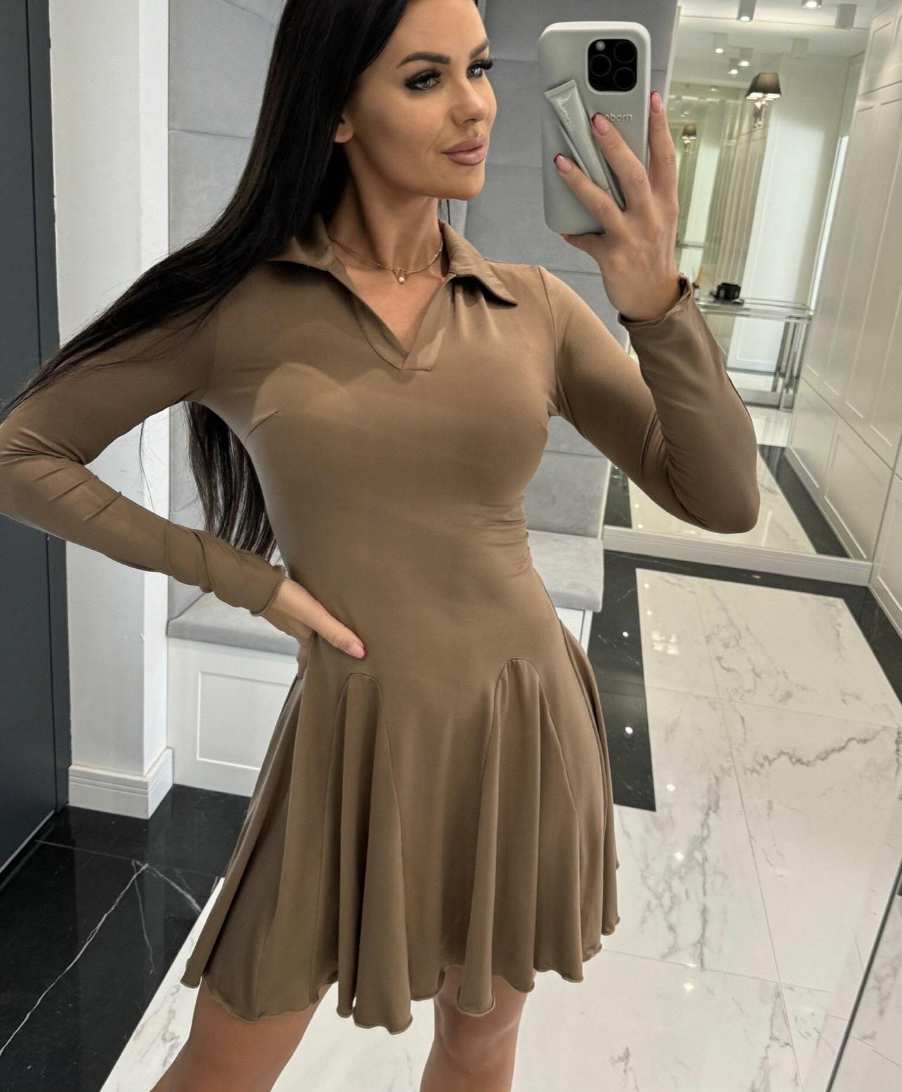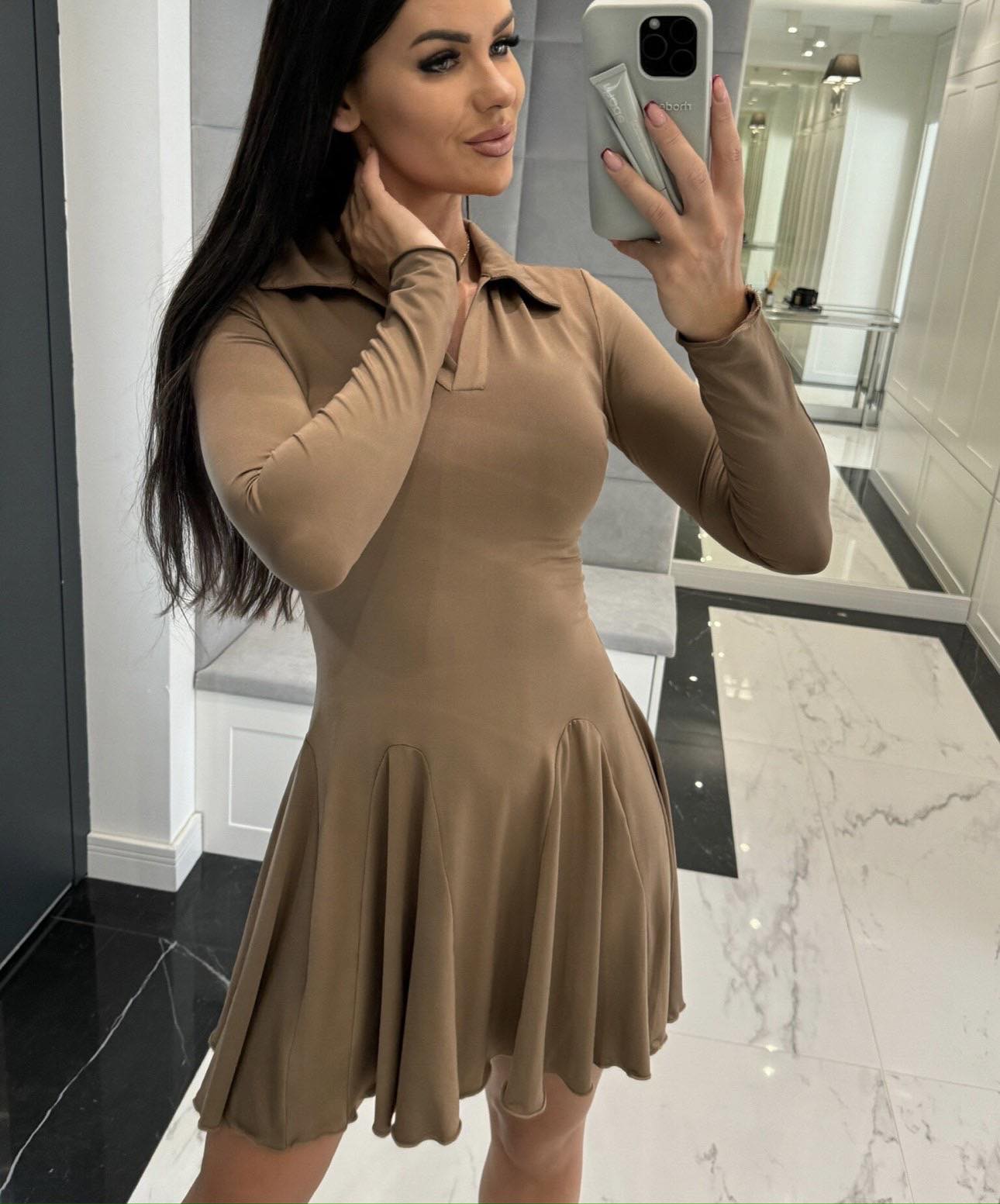 Μini Φόρεμα εφαρμοστό με γιακαδάκι και τύπου πιέτες.