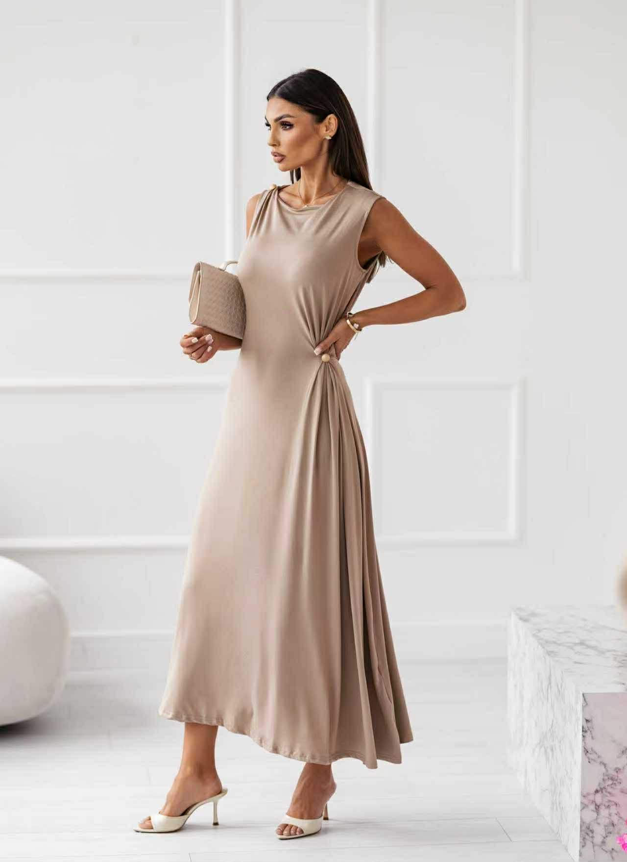 Αναδείξτε τη θηλυκότητα και την κομψότητά σας με ένα φόρεμα που ξεχωρίζει για τη ρευστή του γραμμή και τη minimal αισθητική του. Με απαλή υφή που αγκαλιάζει το σώμα, προσφέρει μία elegant σιλουέτα που κινείται αρμονικά σε κάθε σας βήμα. Η αμάνικη γραμμή και η καθαρή λαιμόκοψη δημιουργούν ένα διαχρονικό αποτέλεσμα, ενώ η ιδιαίτερη σούρα στο πλάι με διακριτική λεπτομέρεια αναδεικνύει τη μέση και προσθέτει μοντέρνο χαρακτήρα. Το άνοιγμα στο κάτω μέρος χαρίζει κίνηση και έναν διακριτικό αισθησιασμό. Ιδανικό για chic εμφανίσεις από το πρωί έως το βράδυ, συνδυάζεται εύκολα με κομψά αξεσουάρ και πέδιλα, δημιουργώντας ένα sophisticated look που εντυπωσιάζει.