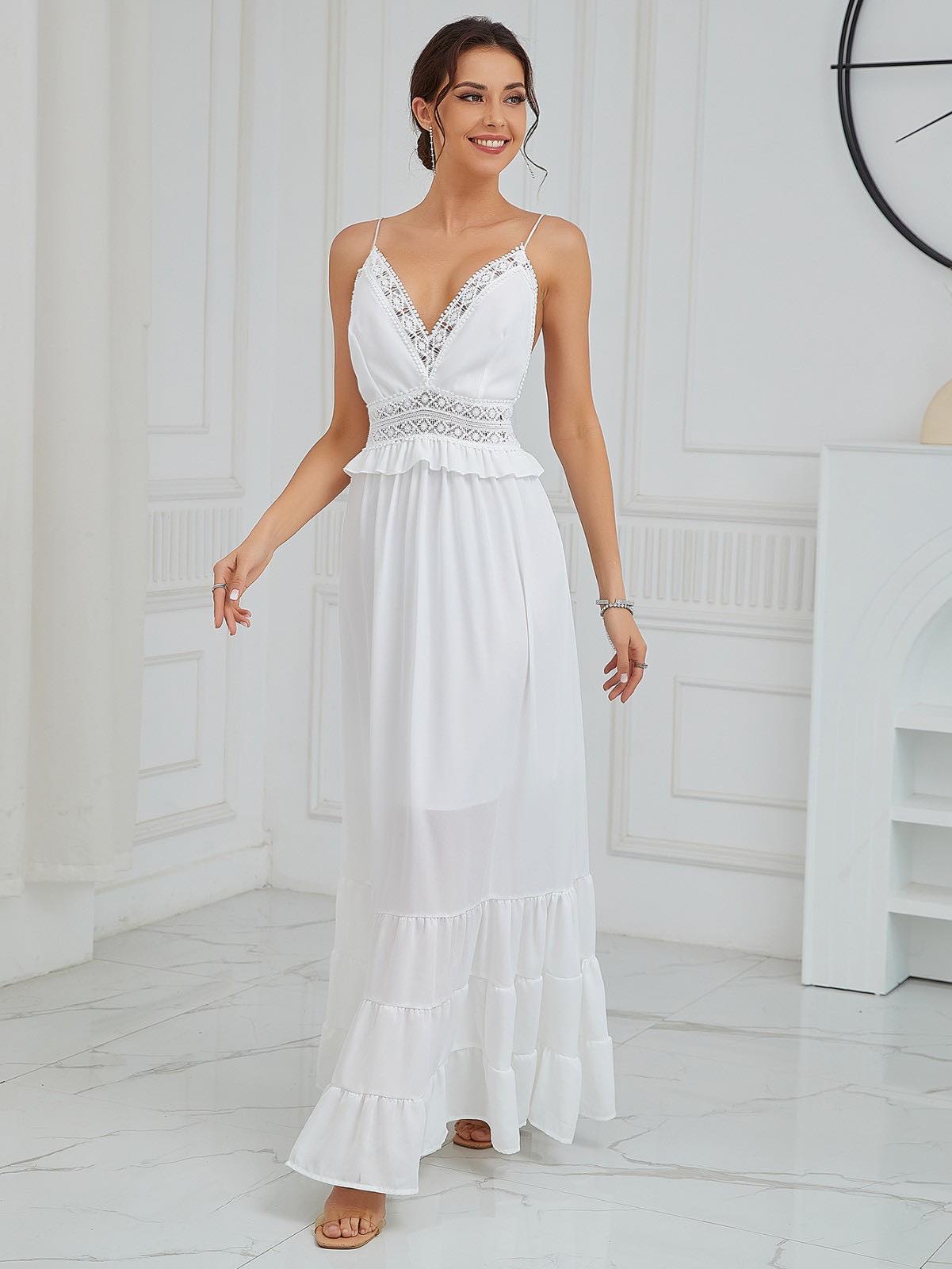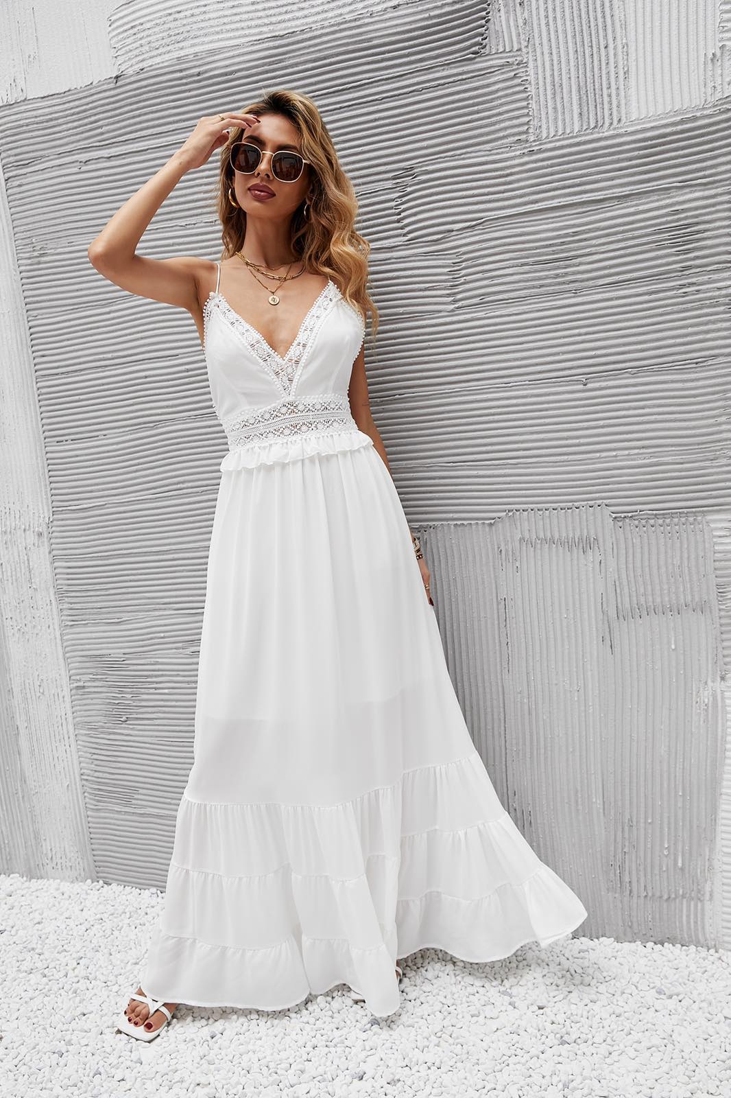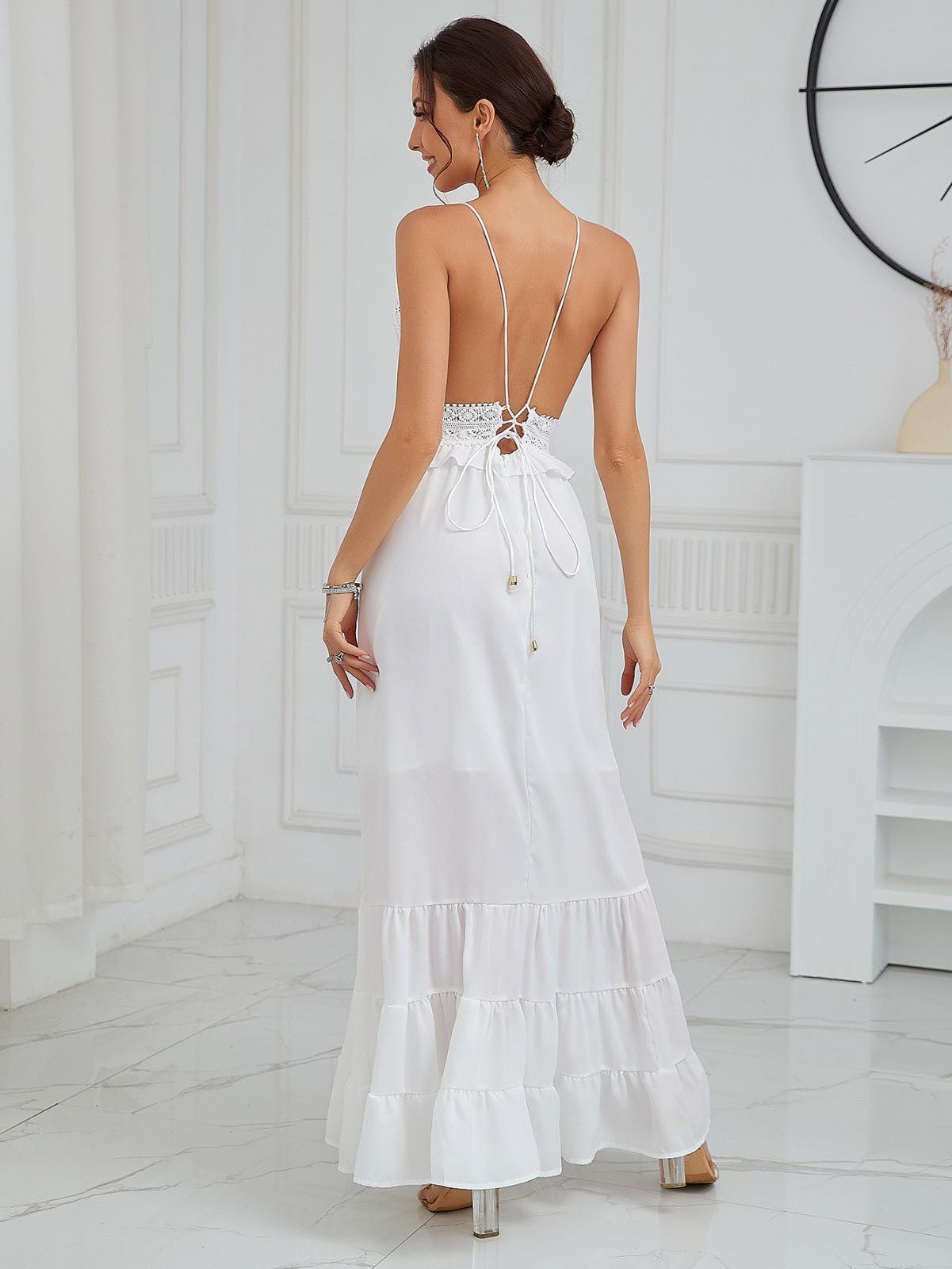 Μάξι φόρεμα με ανοιχτή πλάτη και κορδόνι.