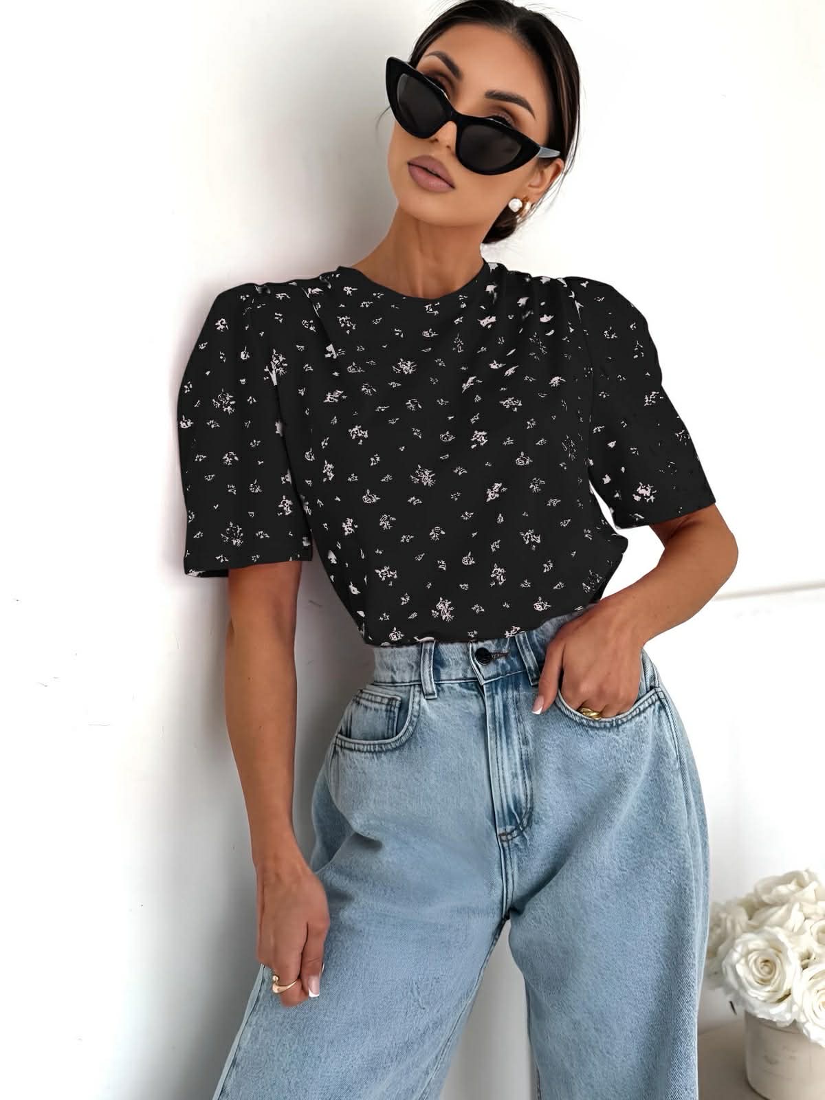 Μπλούζα με διακριτικό floral μοτίβο και κομψή γραμμή που αγκαλιάζει όμορφα το σώμα. Διαθέτει στρογγυλή λαιμόκοψη και θηλυκή μποντέρνα πινελιά. Ιδανική για καθημερινές εμφανίσεις. Συνδυάζεται έυκολα με τζιν,υφασμάτινα παντελόνια για effortless αποτέλεσμα.