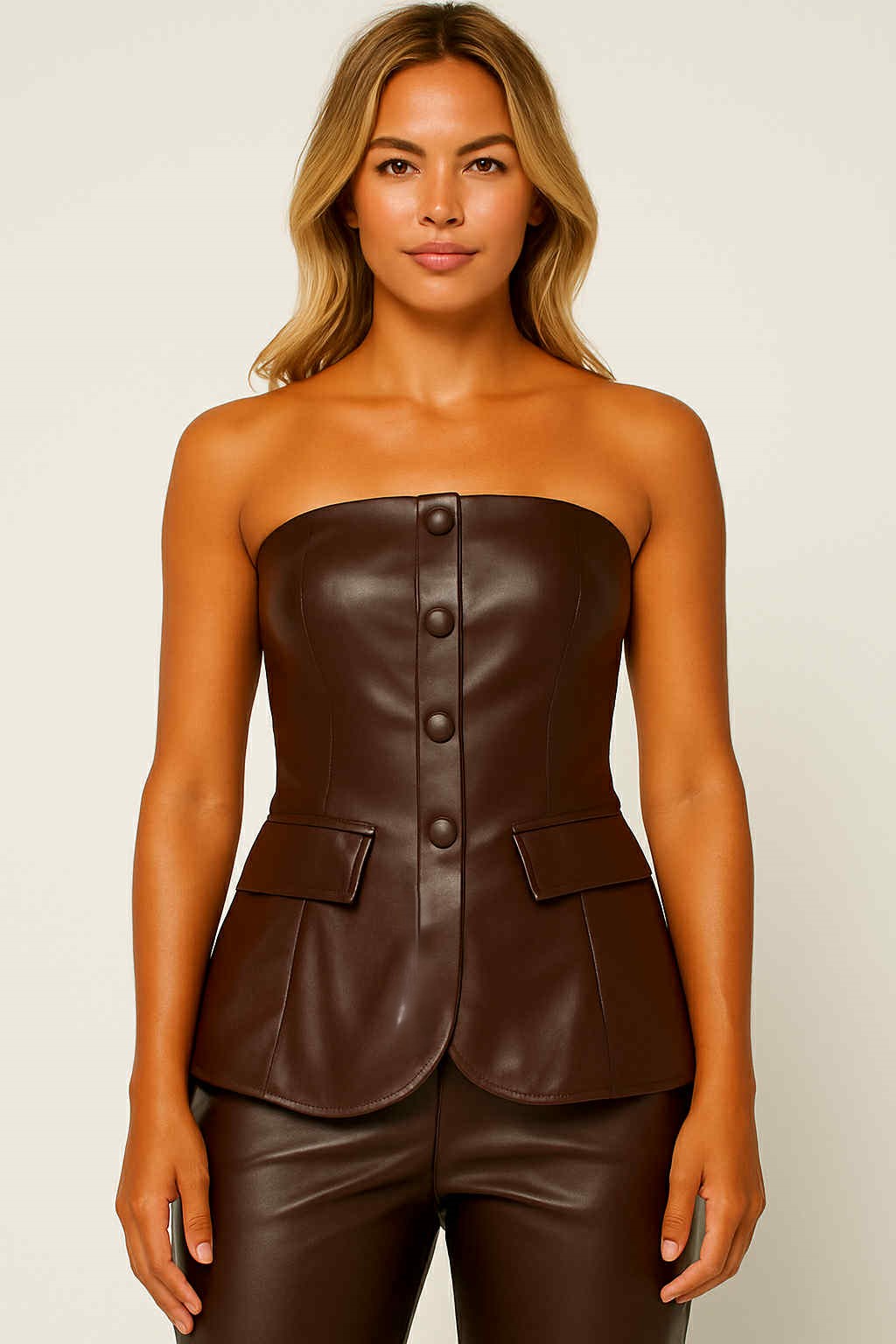 Αναδείξτε το στυλ σας με αυτό το εντυπωσιακό corset top. Είναι από συνθετική δερματίνη και η στενή εφαρμογή του τονίζει τη σιλουέτα, ενώ ο σχεδιασμός σε στυλ κορσέ προσφέρει τέλεια στήριξη. Είναι ιδανικό για μια βραδινή έξοδο, ένα party ή μια επίσημη εκδήλωση. Στην πλάτη διαθέτει σφηκοφωλιά και επένδυση στο μπούστο.