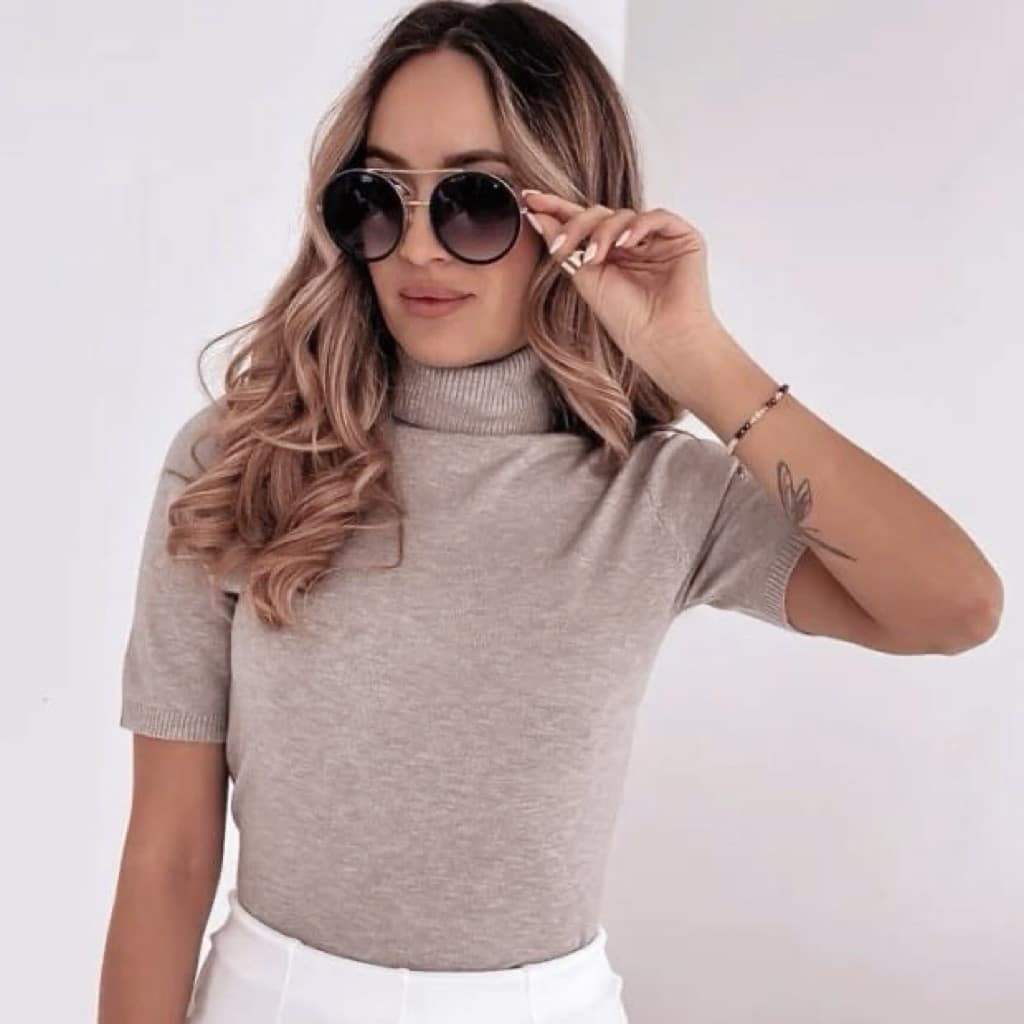 Μπλούζα ζιβαγκάκι κοντομάνικη πλεκτή με μαλακή λεπτή πλέξη