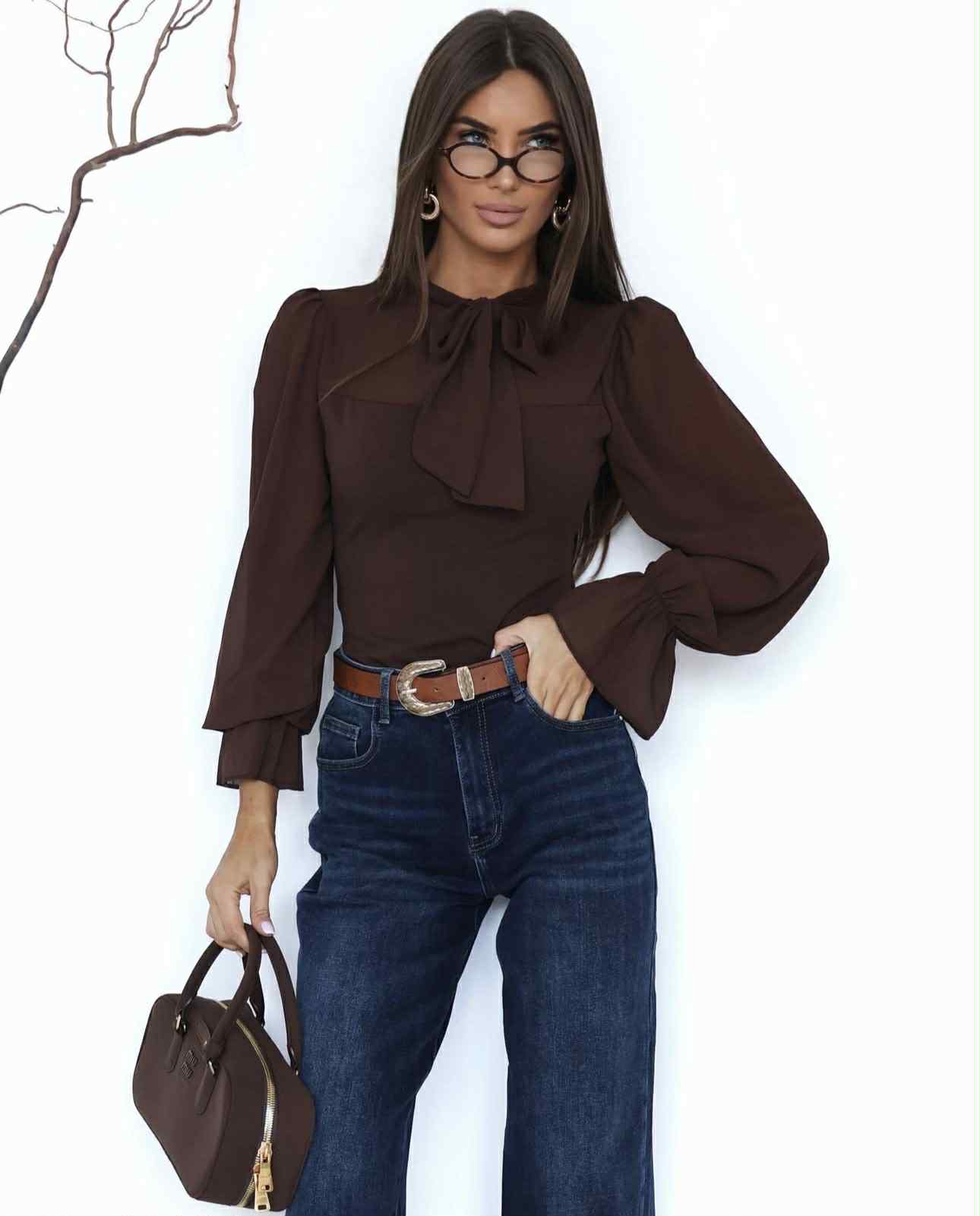 Αναδείξτε τη σιλουέτα σας με αυτήν την κομψή, μακρυμάνικη μπλούζα. Αγκαλιάζει το σώμα, προσφέροντας άνεση και στυλ. Το απόλυτο σημείο εστίασης είναι ο φιόγκος που δένει στον λαιμό και οι διαφάνεια στα μανίκια η οποία δημιουργεί και προσθέτει έναν αέρα πολυτέλειας και θηλυκότητας. Είτε ψάχνετε για ένα σικ τοπ για μια βραδινή έξοδο, είτε για ένα διαχρονικό κομμάτι που θα αναβαθμίσει το office look σας, αυτή η μπλούζα είναι η ιδανική επιλογή. Συνδυάστε την με ψηλόμεσο παντελόνι ή φούστα για ένα ολοκληρωμένο και εντυπωσιακό σύνολο.