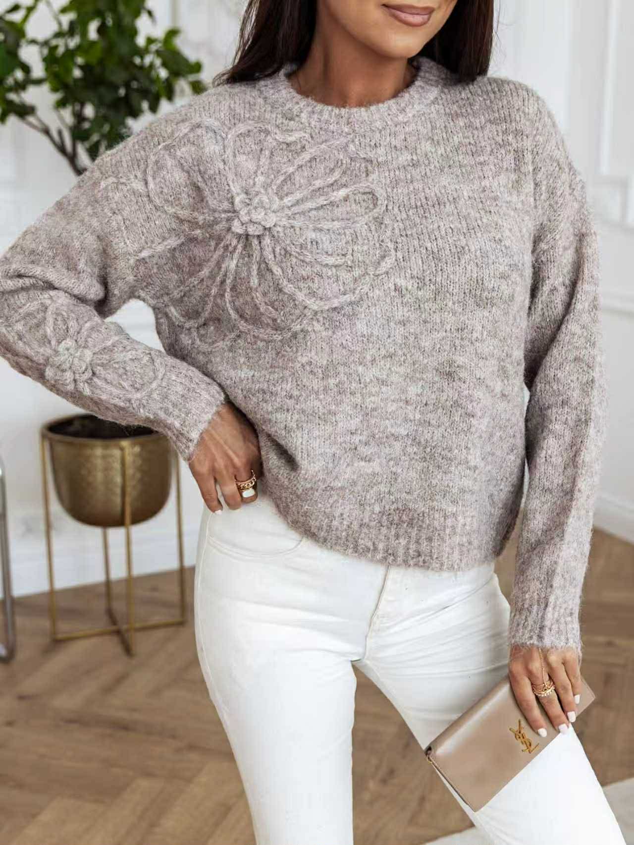 Μπλούζα πλεκτή με σχέδιο ανάγλυφο λουλούδι. Διαθέτει κανονική εφαρμογή που αναδεικνύει τη σιλουέτα και προσφέρει άνεση και στυλ σε κάθε εμφάνιση. Ιδανική επιλογή για κομψά casual looks, συνδυάζεται εύκολα με τζιν ή φούστα για ένα chic αποτέλεσμα.