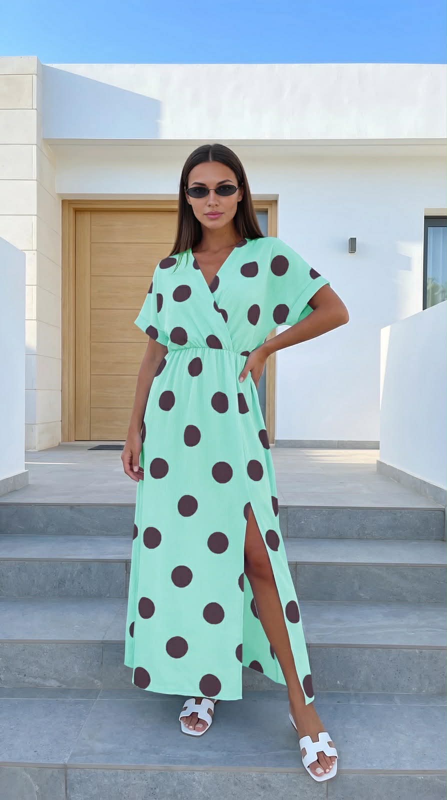 Polka dress εντυπωσιακό σχεδιασμένο για εμφανίσεις με χαρακτήρα. Το διακριτικό άνοιγμα στο πόδι και η αέρινη γραμμή χαρίζουν κίνηση και κομψότητα, κάνοντας το ιδανικό για all day stylish εμφανίσεις. Η μέση διαθέτει λάστιχο για τέλεια εφαρμογή και ανάδειξη της σιλουέτας.