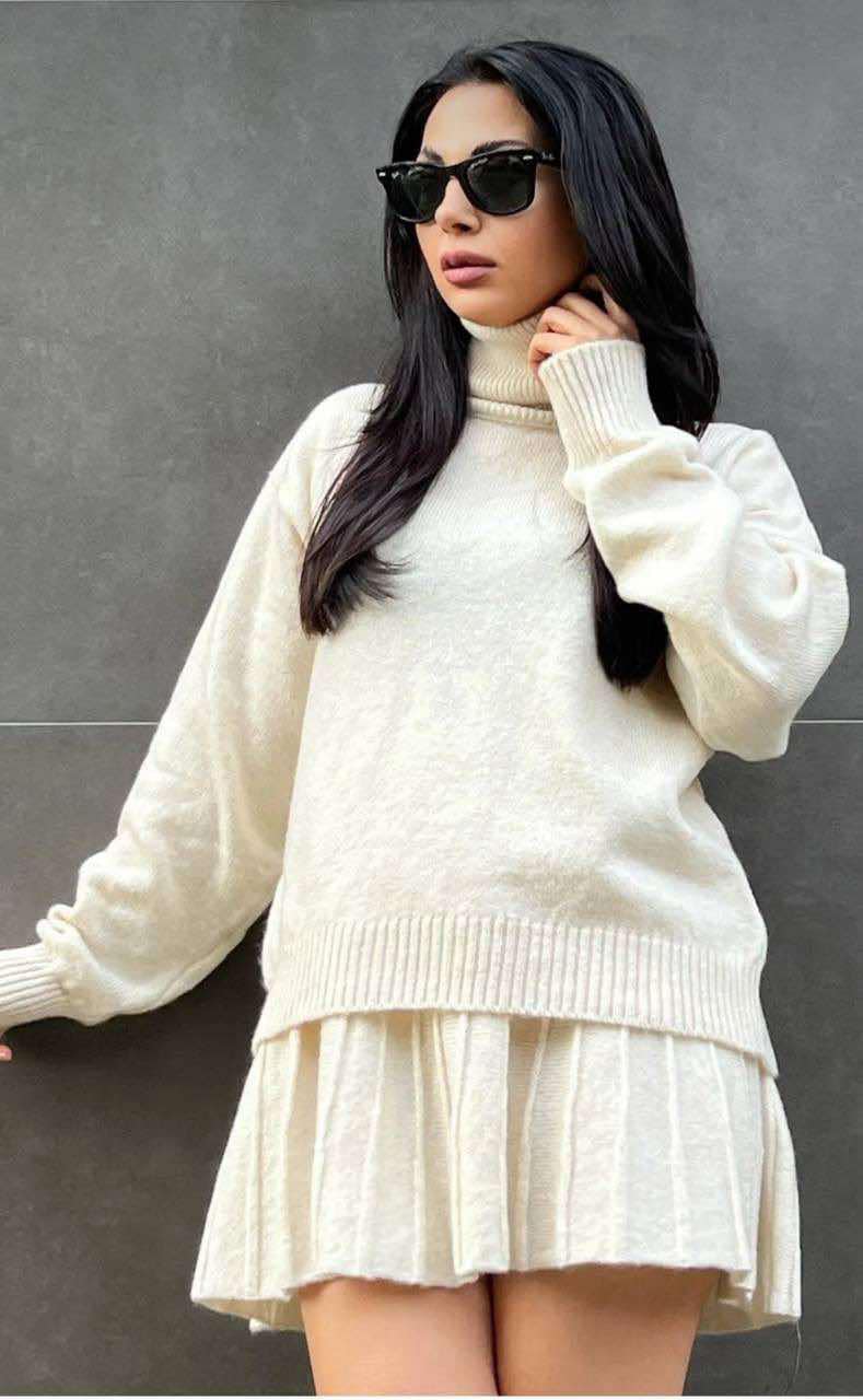 Σετ πλεκτό μπλούζα με φούστα πλισέ. Η φούστα διαθέτει λάστιχο στην μέση.