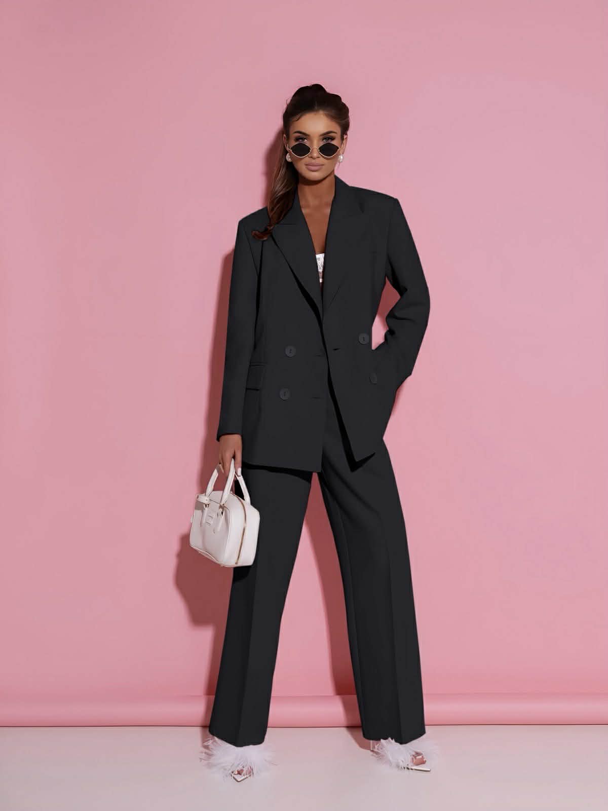 Κοστούμι με oversized σακάκι σχεδιασμένο για δυναμικές και κομψές εμφανίσεις. Το σακάκι έχει άψογη εφαρμογή και κλασικό γιακά αναδεικνυοντας τη σιλουέτα διαθέτει φόδρα και βάτες. Το παντελόνι σε ίδια γραμμή με φερμουάρ και λάστιχο στη μέση προσφέρει ένα elegant αποτέλεσμα ιδανικό για συνδυασμό με sneakers ή ψηλοτάκουνα.