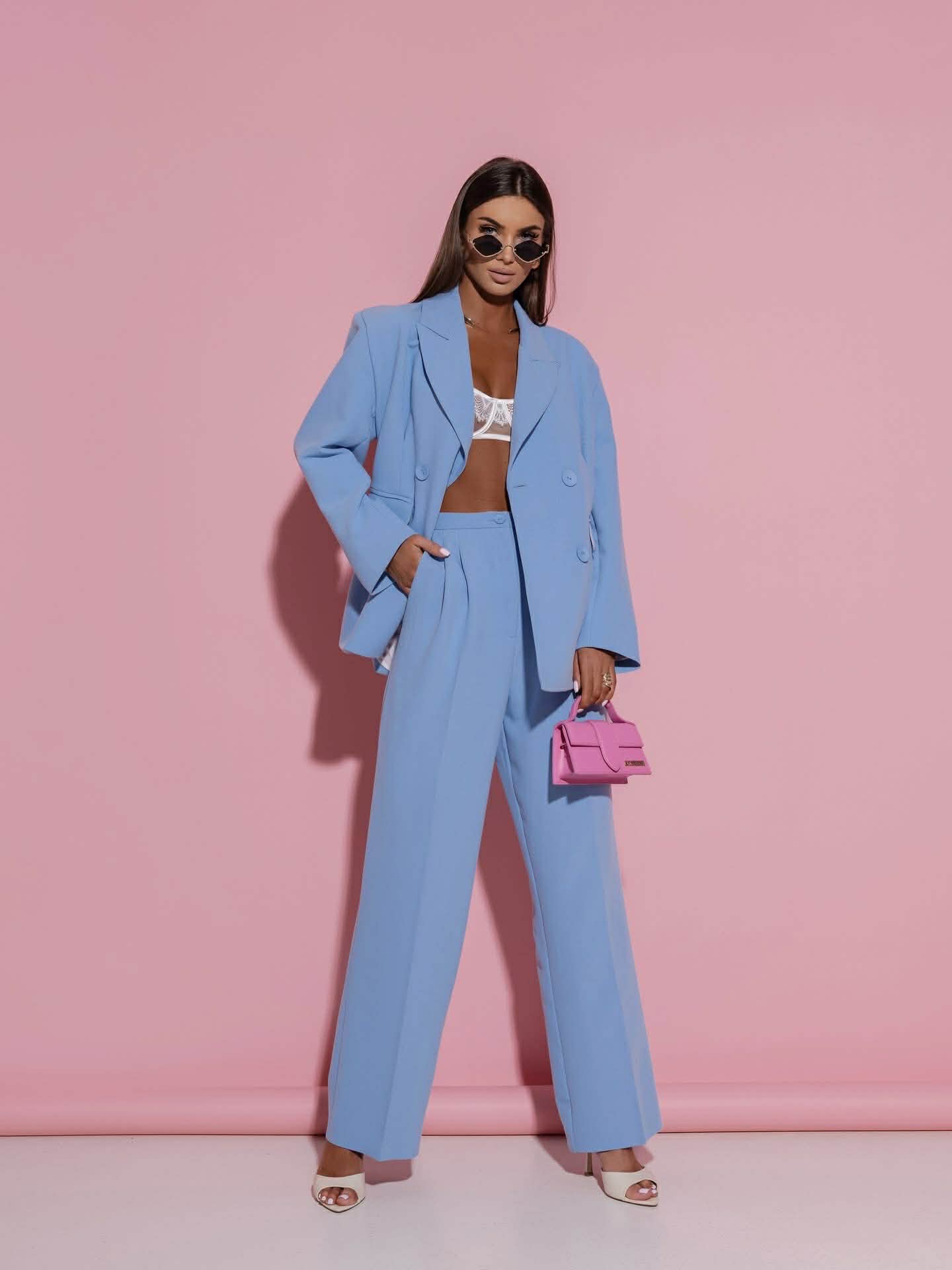 Κοστούμι με oversized σακάκι σχεδιασμένο για δυναμικές και κομψές εμφανίσεις. Το σακάκι έχει άψογη εφαρμογή και κλασικό γιακά αναδεικνυοντας τη σιλουέτα διαθέτει φόδρα και βάτες. Το παντελόνι σε ίδια γραμμή με φερμουάρ και λάστιχο στη μέση προσφέρει ένα elegant αποτέλεσμα ιδανικό για συνδυασμό με sneakers ή ψηλοτάκουνα.