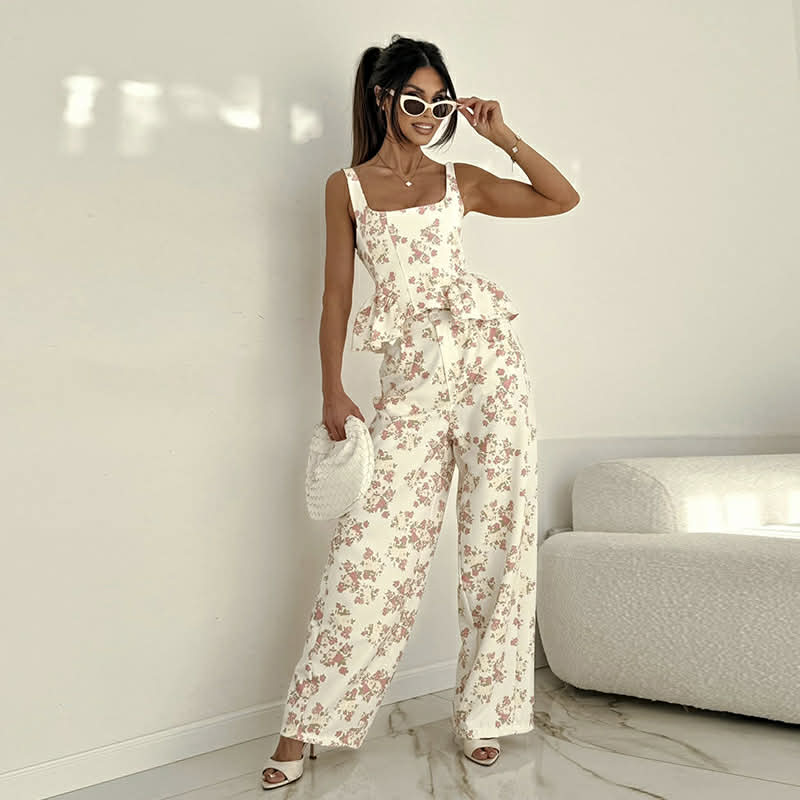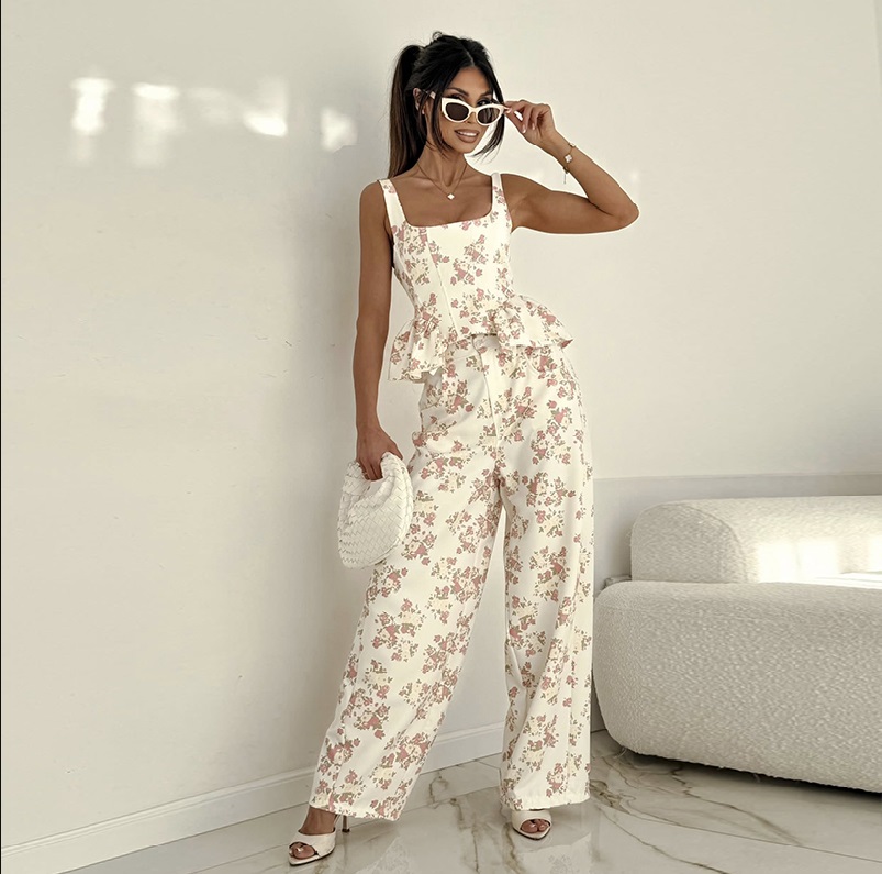 Ανακάλυψε το απόλυτο καλοκαιρινό σετ που συνδυάζει θηλυκότητα και κομψότητα. Το εφαρμοστό top με τιράντες και διακριτικό peplum σχέδιο αγκαλιάζει τη μέση, δημιουργώντας μια super flattering σιλουέτα, ενώ το ψηλόμεσο παντελόνι με ίσια γραμμή χαρίζει ύψος και elegant κίνηση. Το τοπ διαθέτει σφηκοφωλιά στην πλάτη και το παντελόνι λάστιχο στην μέση.