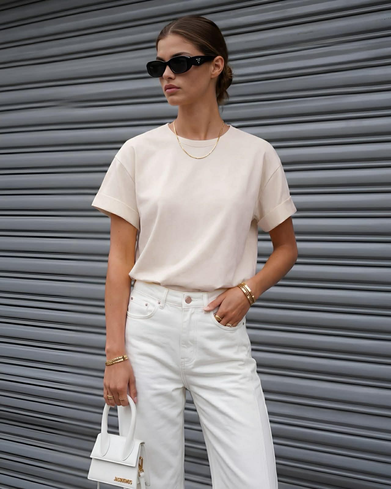 Basic tshirt ένα απαραίτητο κομμάτι για κάθε σύγχρονη γκαρνταρόμπα. Συνδυάζει άνεση και καθαρή γραμμή, προσφέροντας ανεπιτήδευτη κομψότητα. Η ίδια του γραμμή και η κλασική στρόγγυλη λαιμόκοψη το καθιστούν ιδανική βάση για layering αλλά και για solo εμφανίσεις. Ταιριάζει άψοφα με jeans,tailored παντελόνι ή φούστες.