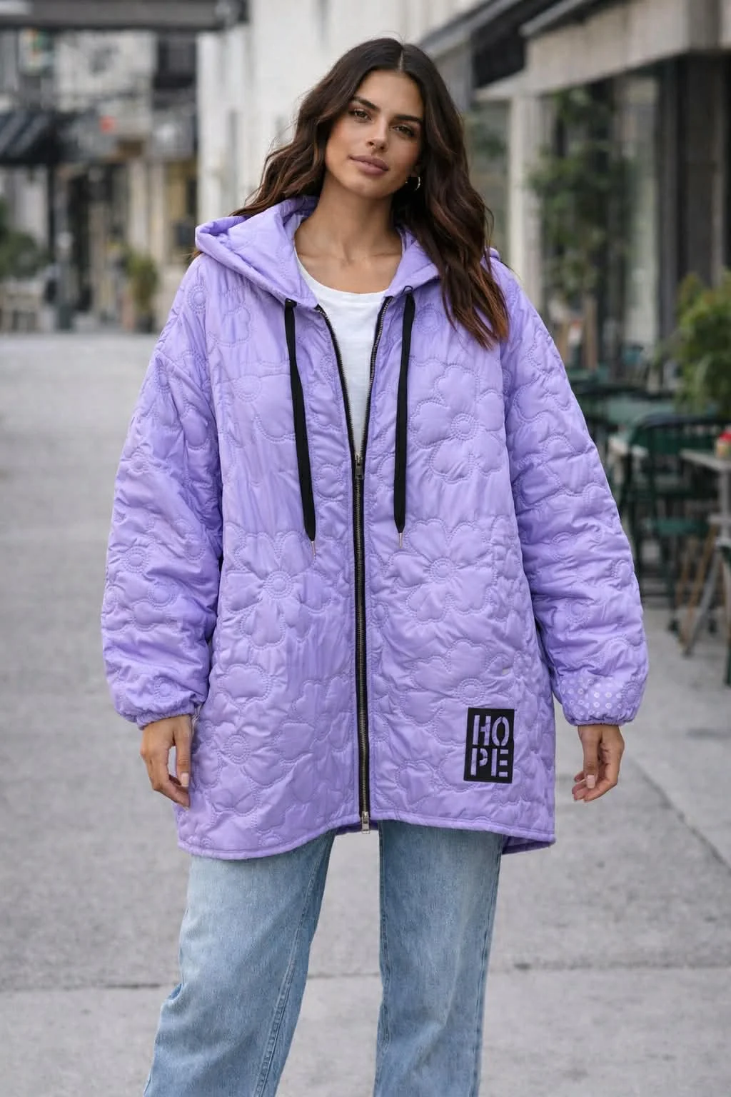 Oversized ανοιξιάτικο μπουφάν καπιτονέ με πολύ ελαφρυά επένδυση. Διαθέτει κουκούλα και τσέπες στα πλαϊνά.