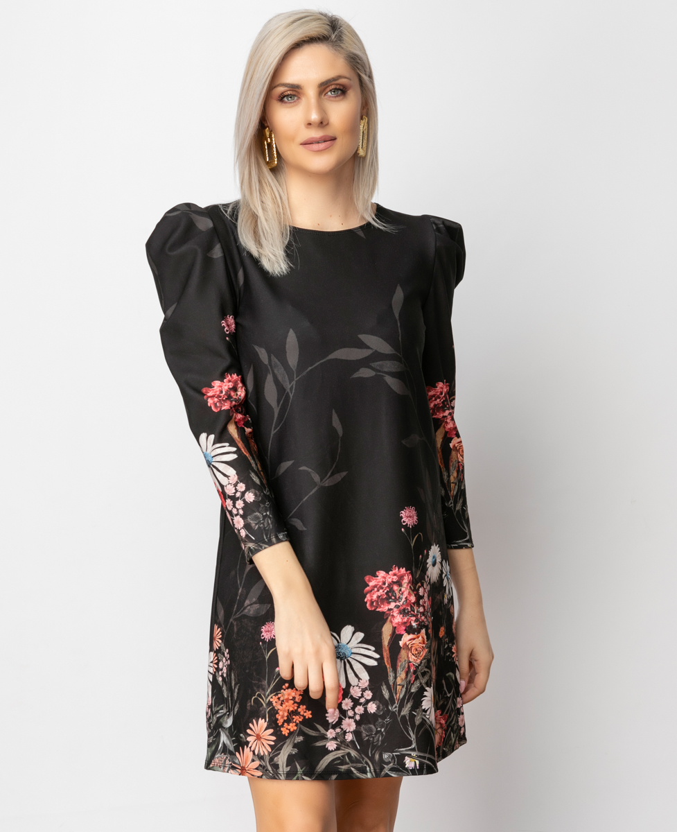 Λευκό φόρεμα με ιδιαίτερους ώμους και floral print.