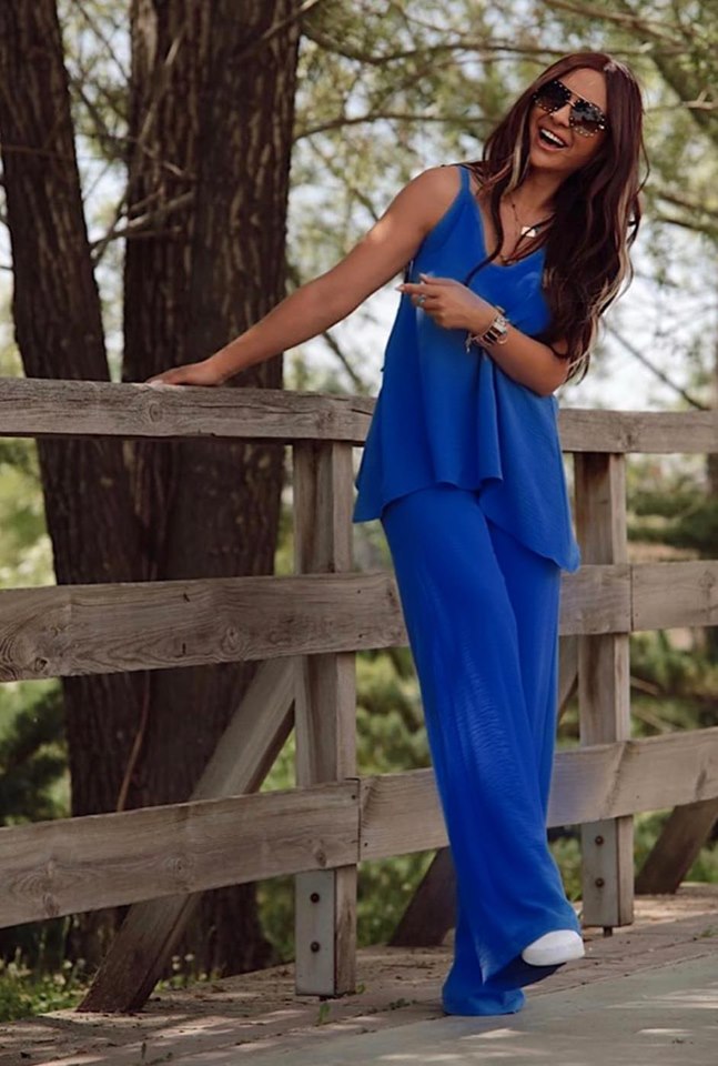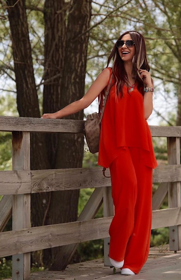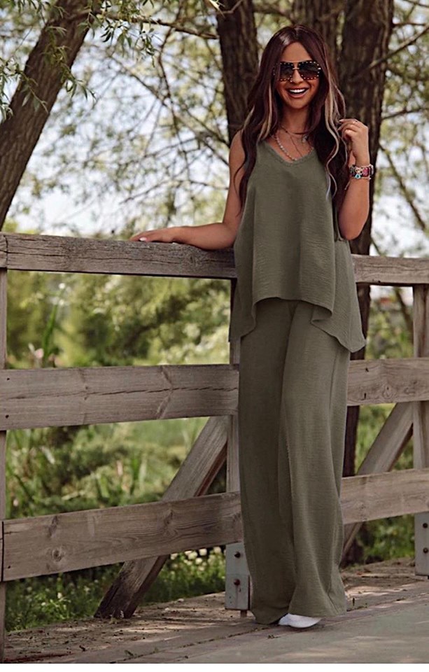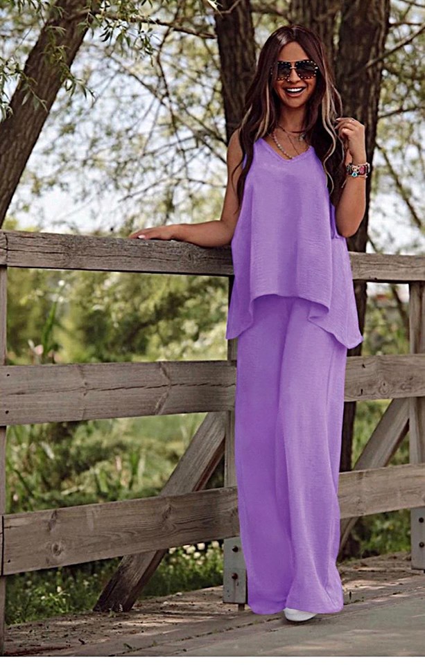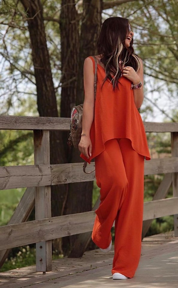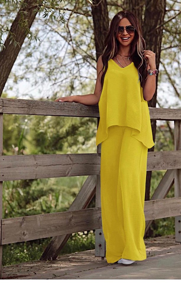Σετ Παντελόνα με τοπ σε άνετη γραμμή. Το τοπ είναι χοντρη τιράντα και η παντελόνα έχει λάστιχο στην μέση.